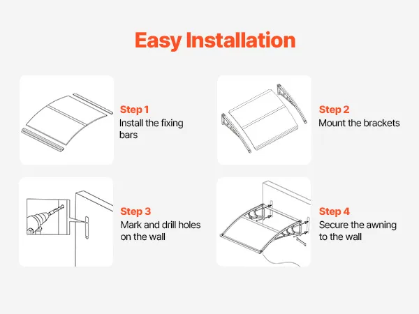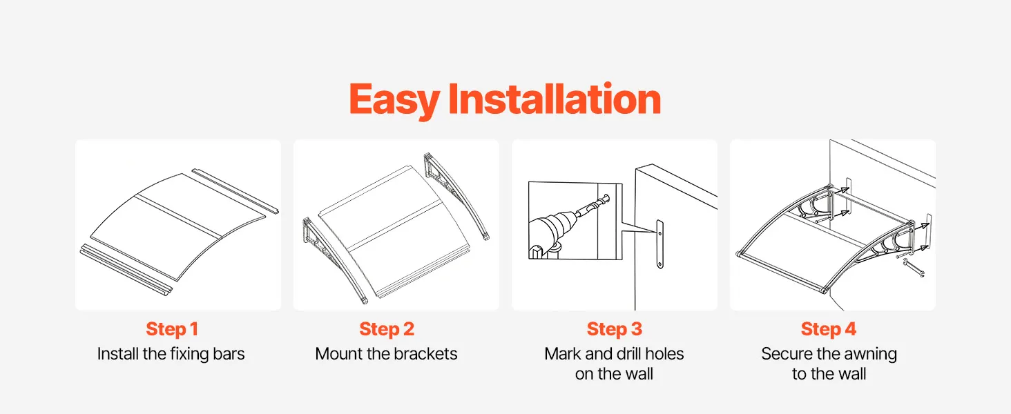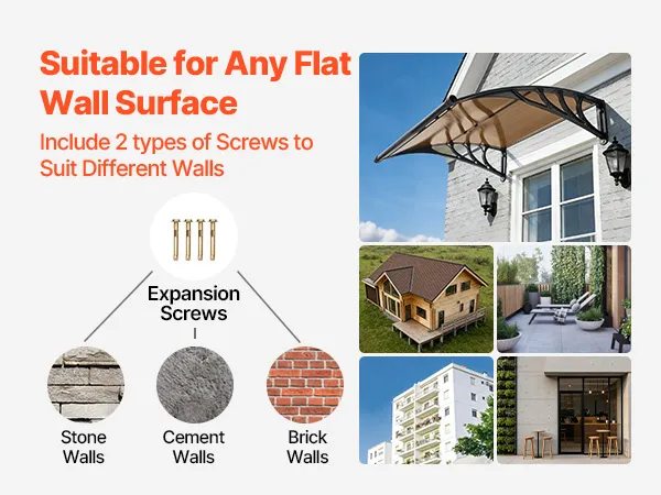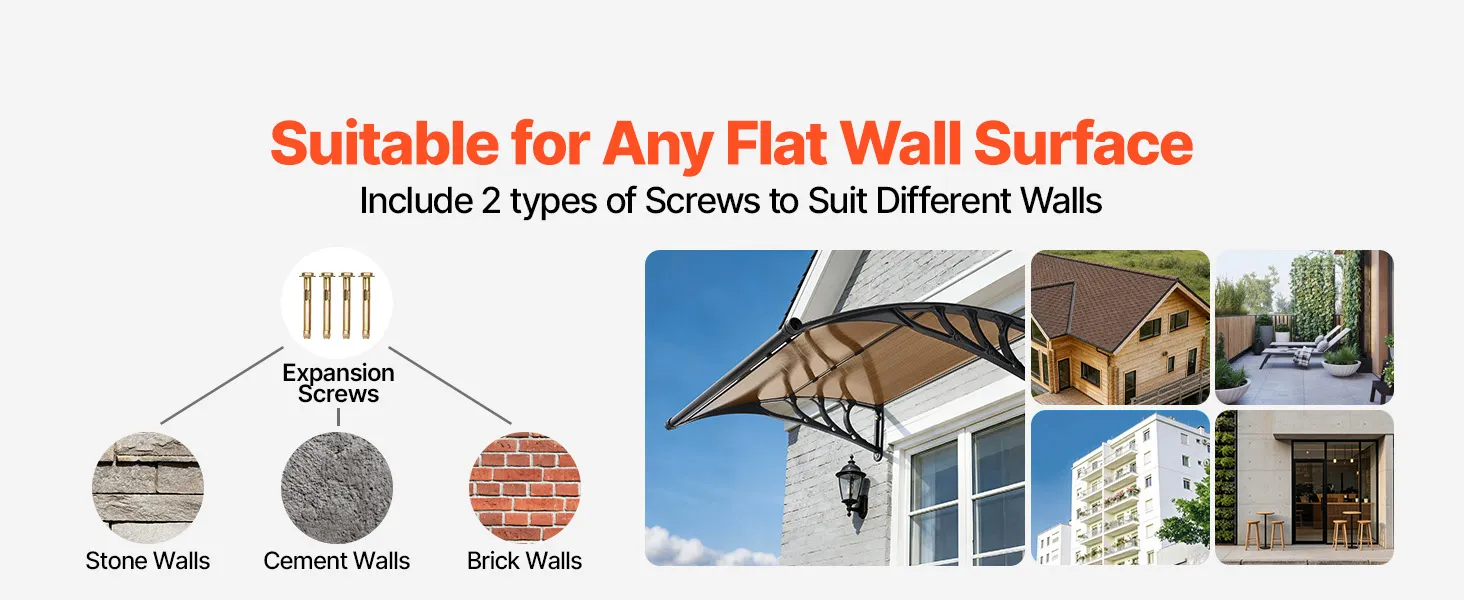 Quick DIY Installation: This exterior door canopy comes with a complete accessory kit, clear installation instructions, and two types of mounting screws for brick, concrete, or wooden walls. Easy for one-person DIY installation. Measure your space for an ideal fit