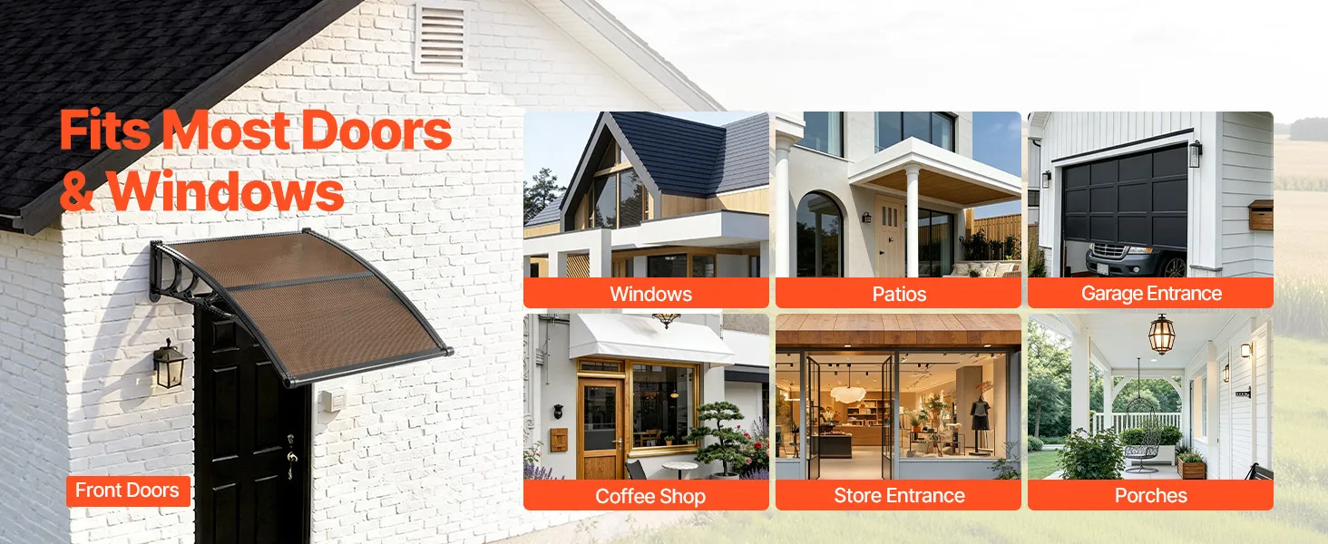 Versatile Applications: Ideal for front doors, windows, balconies, and porches, this exterior door awnings suits homes, coffee shops, and retail storefronts alike. Securely packaged for secure delivery and backed by responsive customer support
