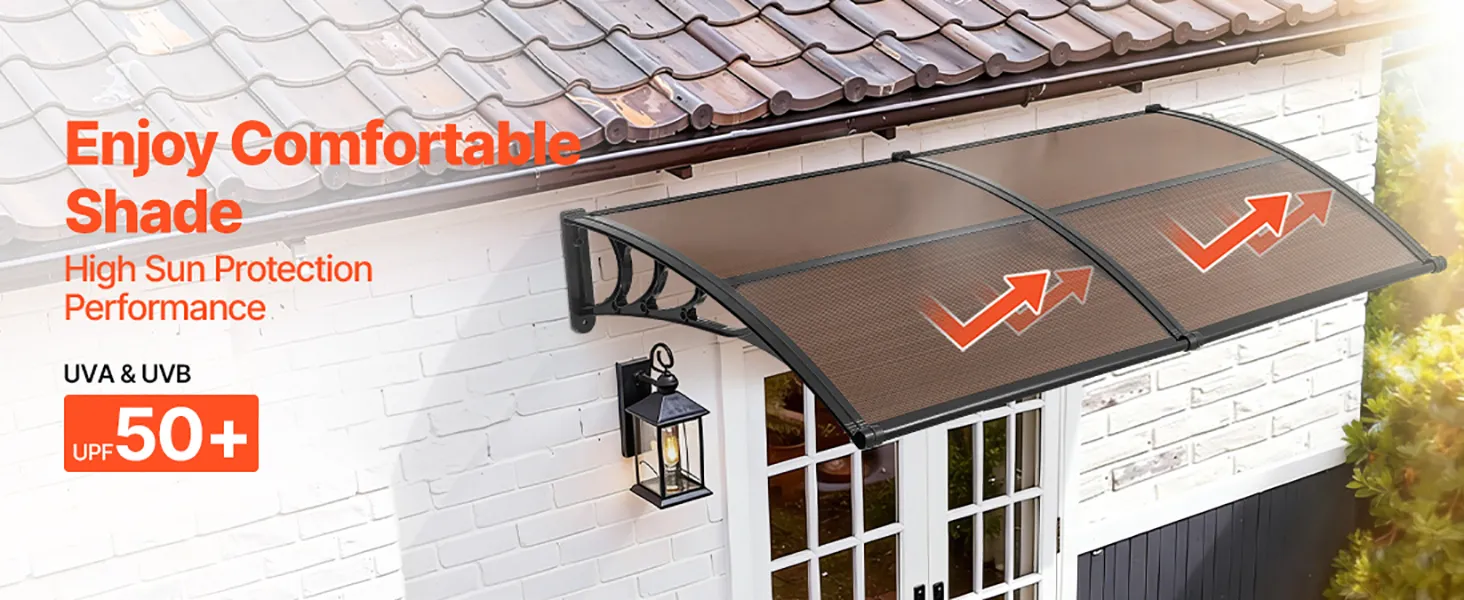 All-Season Protection: The window awning blocks harsh sunlight, shields against rain & snow, and withstands strong wind. With UPF 50+ protection, it reduce heat in summer while providing reliable coverage in winter. Suitable for front door and patio