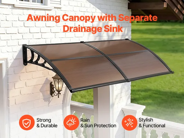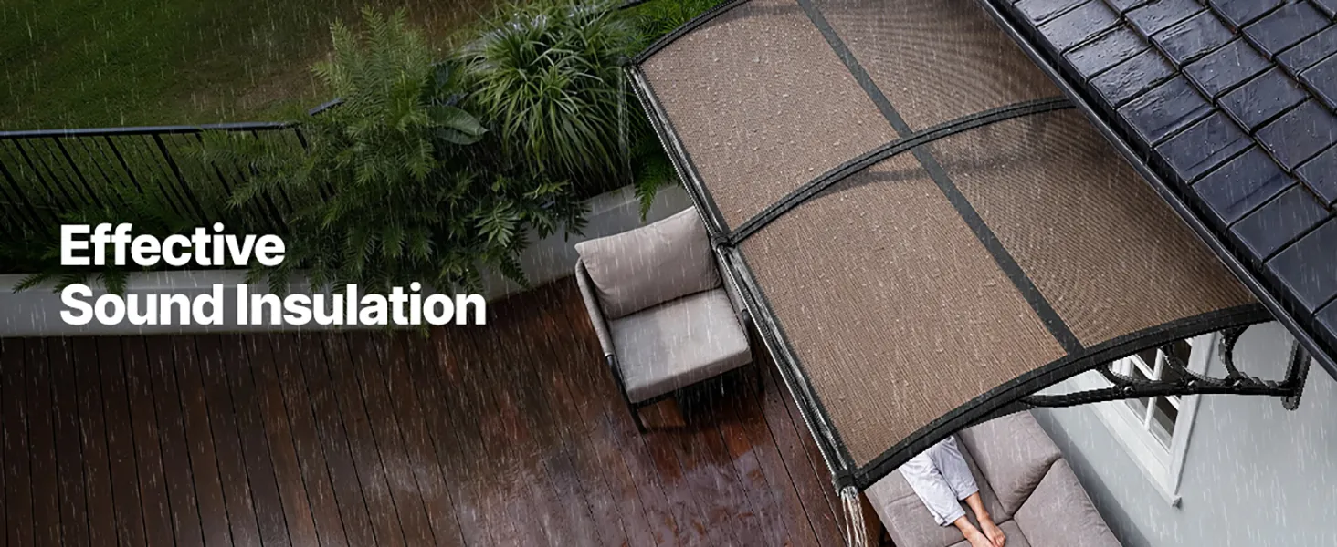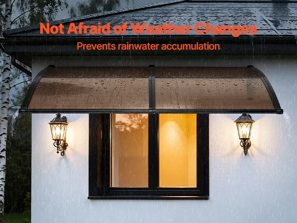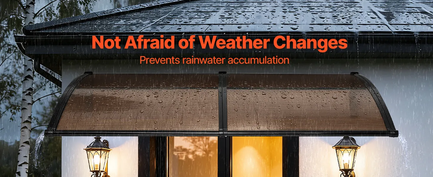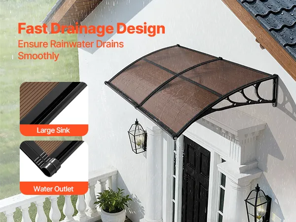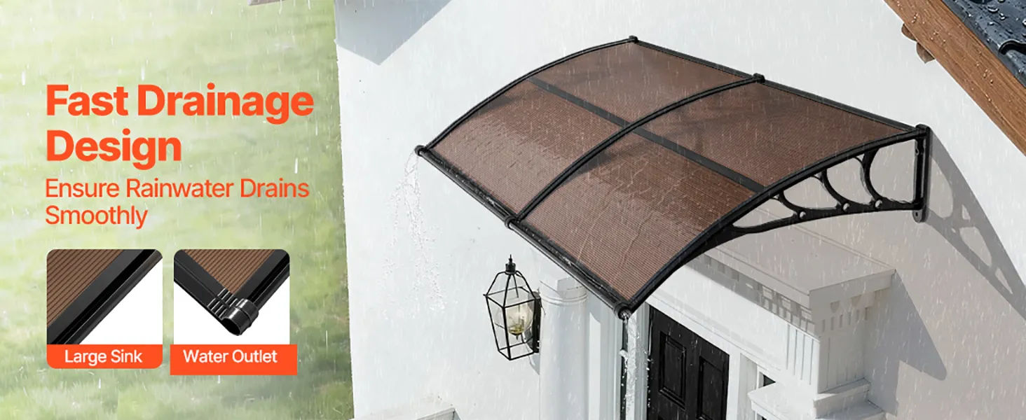 Efficient Drainage Design: Designed with an upgraded directional drainage sink, this polycarbonate door awning quickly guides rainwater away from your entrance. From light drizzles to heavy downpours, it keeps your doorway clean, dry, and slip-free