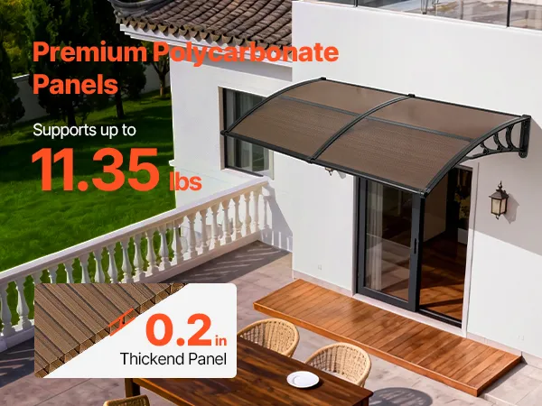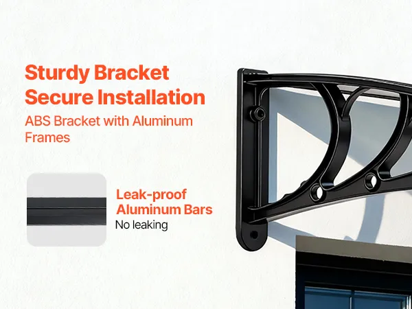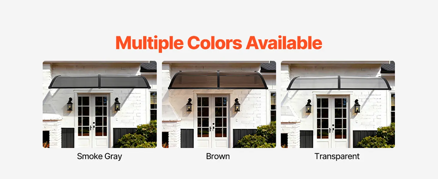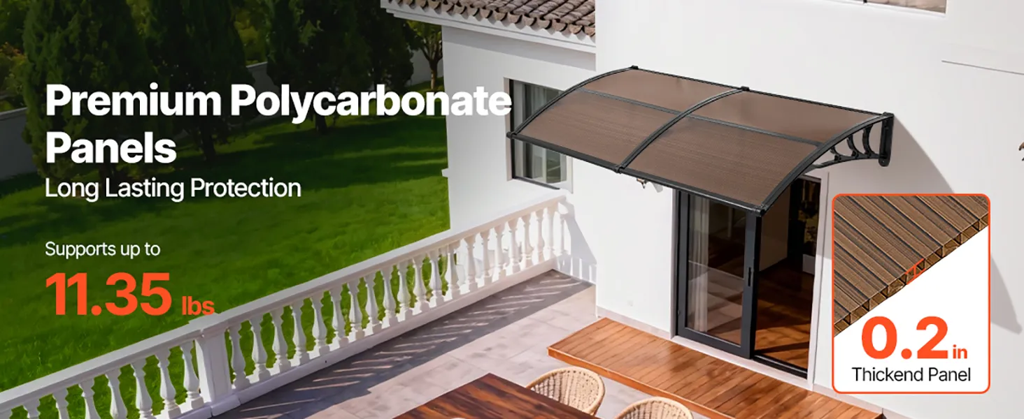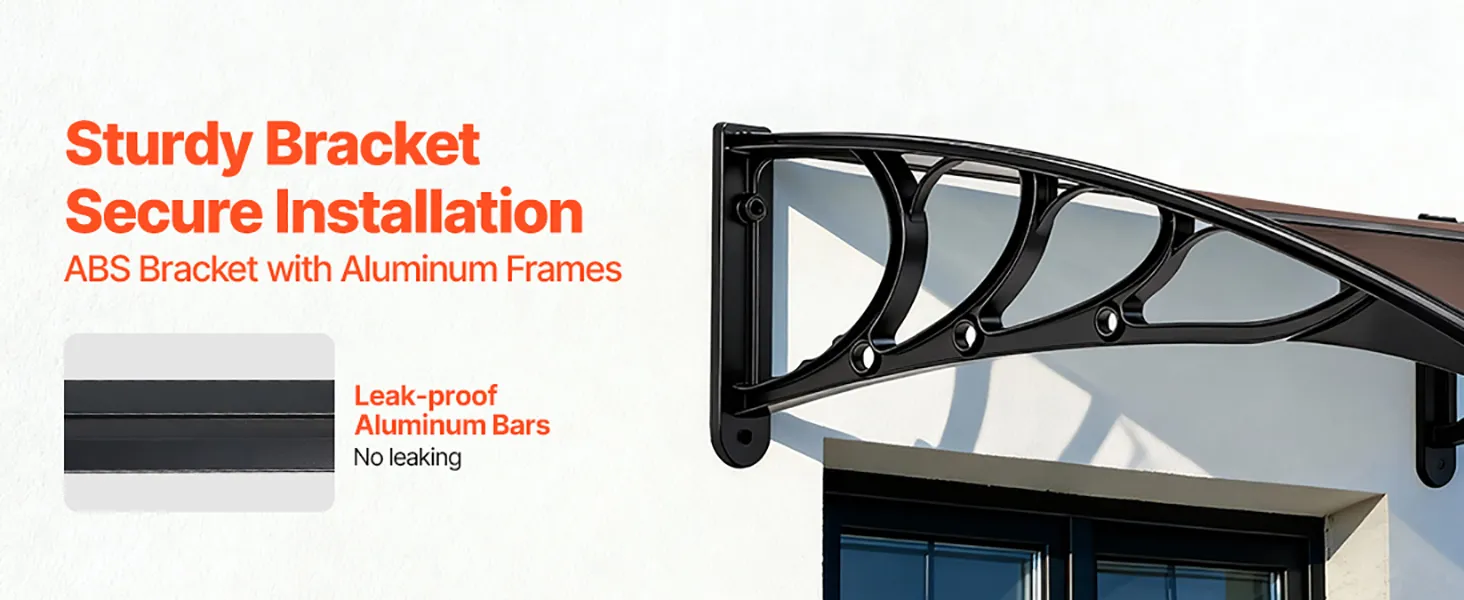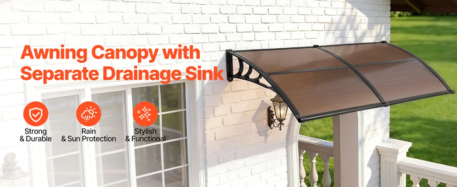 Strong & Durable Construction: Made with high-transparency polycarbonate panels & reinforced metal brackets, this awning for door entrance offers excellent load bearing. It's shock-resistant, flame-retardant, noise-reducing, and adds a clean, modern look to your exterior