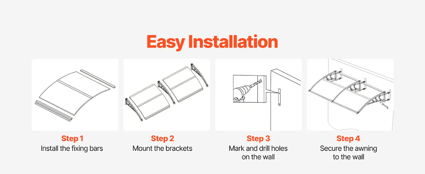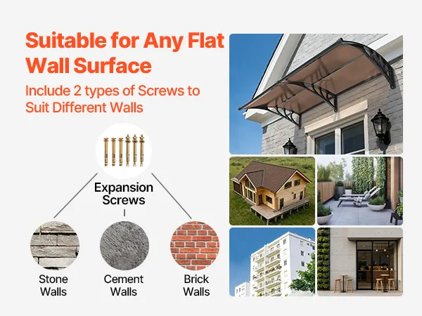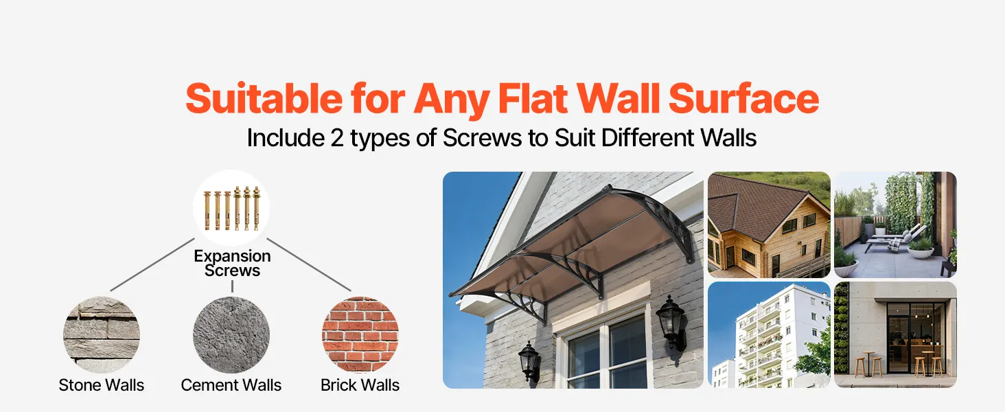 Quick DIY Installation: This exterior door canopy comes with a complete accessory kit, clear installation instructions, and two types of mounting screws for brick, concrete, or wooden walls. Easy for one-person DIY installation. Measure your space for an ideal fit