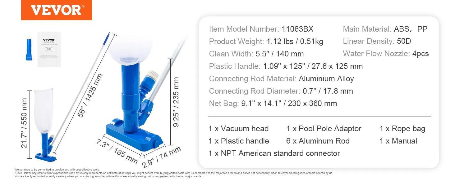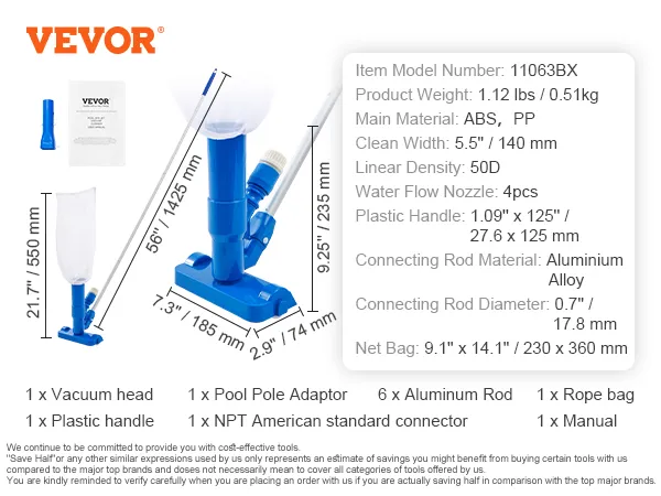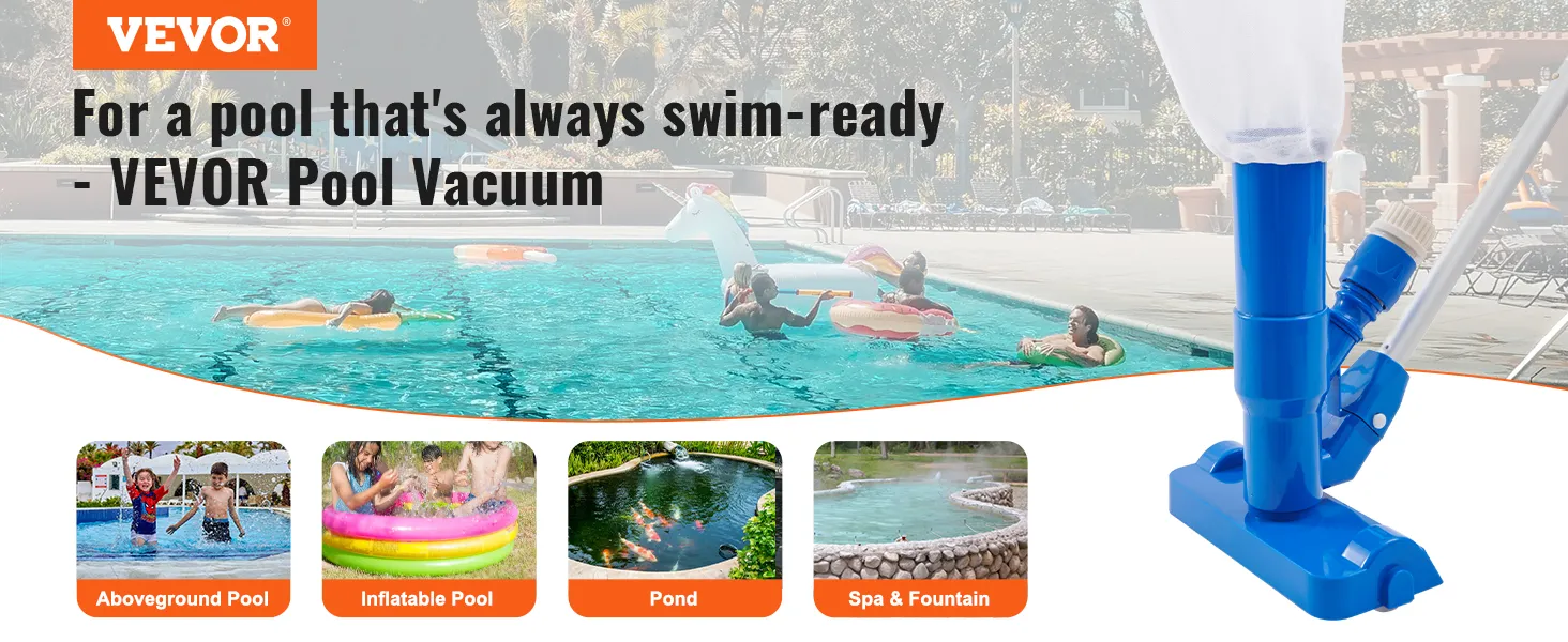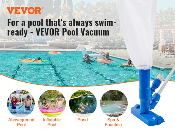 • Various Application: Clean your house pool effortlessly with the VEVOR portable pool vacuum, capable of removing dust, debris, small toys, and leaves. It is highly efficient and perfect for cleaning various types of pools, including home pools, backyard pools, inflatable pools, spas, and above-ground pools.