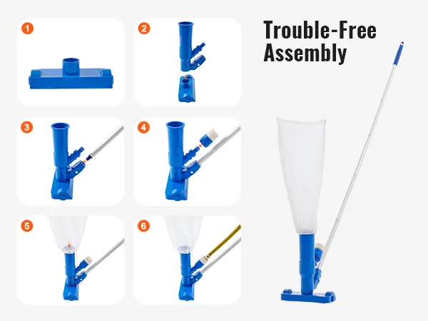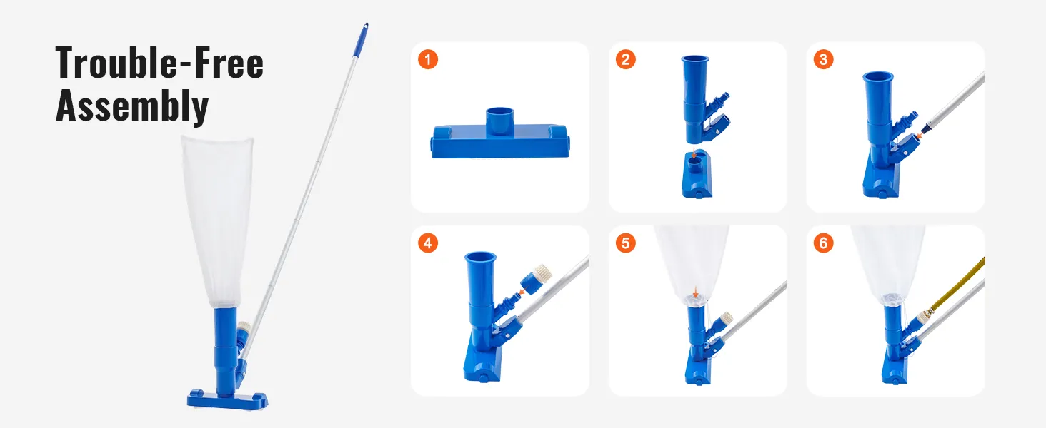 This inflatable pool cleaner is easy to assemble and use by following the attached instruction manual. No complicated setup is required. Moreover, the entire set is portable and can be easily disassembled, allowing for convenient storage in a small corner or separate compartments.