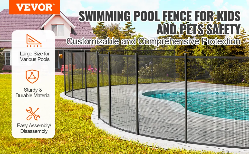The VEVOR pool fence is suitable for various pool shapes and sizes. The fence includes customizable segments. This allows you to fit the fence exactly to your specific pool area. You can cut and adjust the segments as needed. Hence, this makes the fencing versatile and adaptable. Our customizable feature ensures a perfect fit for any pool. It's ideal for irregularly shaped pools. The design secures these fence segments together. So, the gate stays stable and safe.