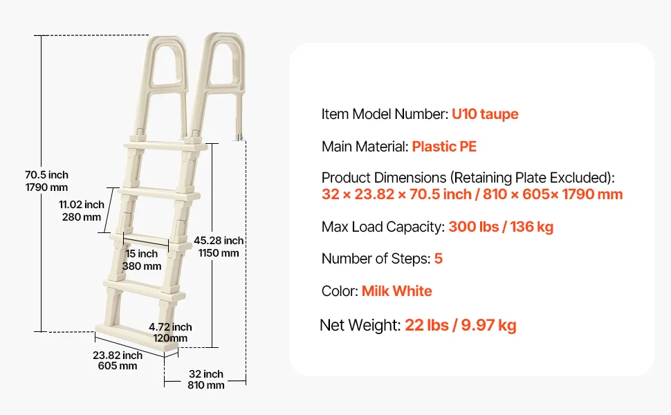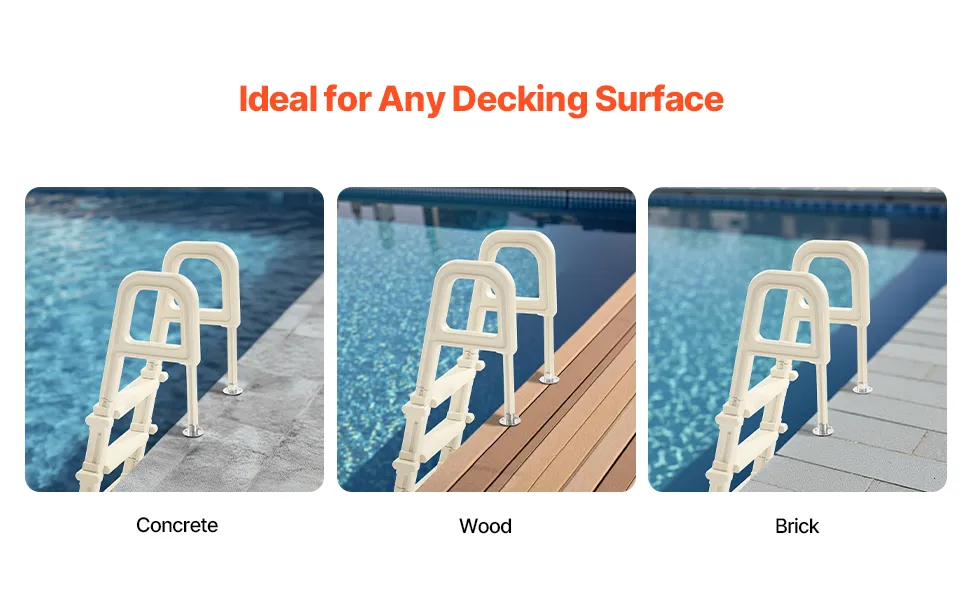 Sturdy & Built-to-last Design: Made of PE material, this swimming pool step is built to withstand all seasons and is fearless to the harsh effects of outdoor sun exposure and aging. You can trust this ladder to avoid accidents and provide durability. The ergonomically designed handrails with rounded edges allow for a comfortable and secure grip.