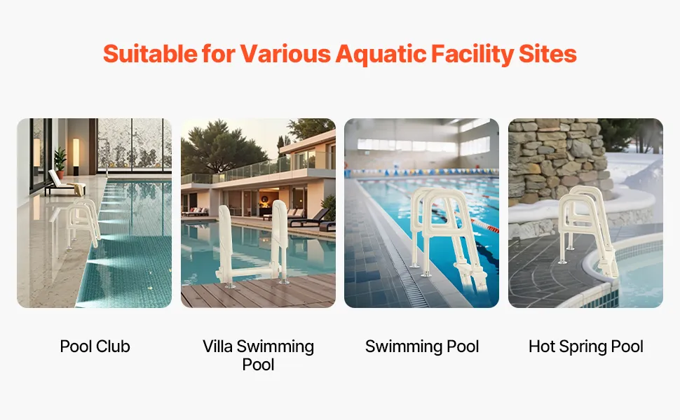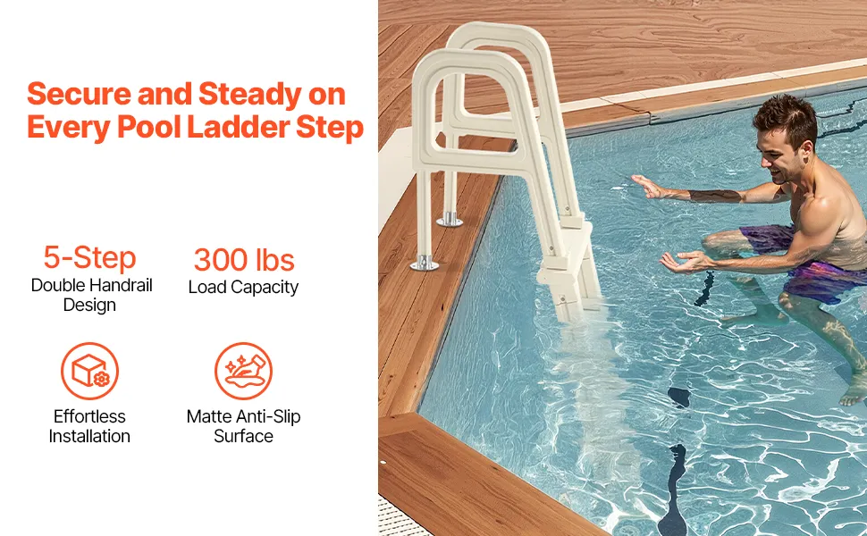 Our 5-step pool ladder with double handrails offers stable, secure entry and exit. It supports up to 300 lb and suits all users. Installation is easy, and the handrails ensure a firm grip. With lasting stability, the ladder is ideal for indoor and outdoor pools.