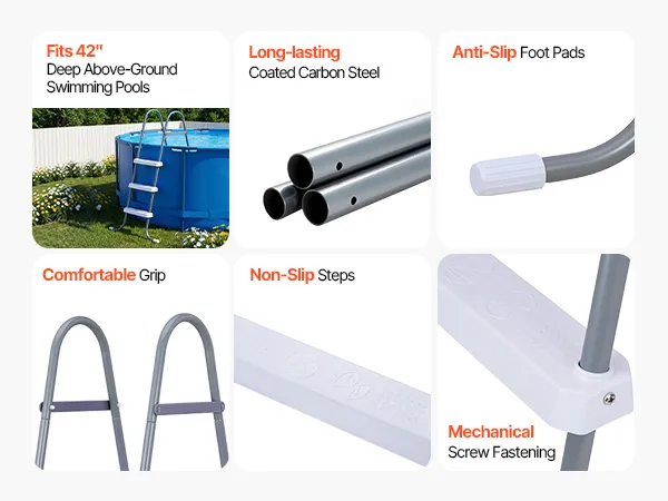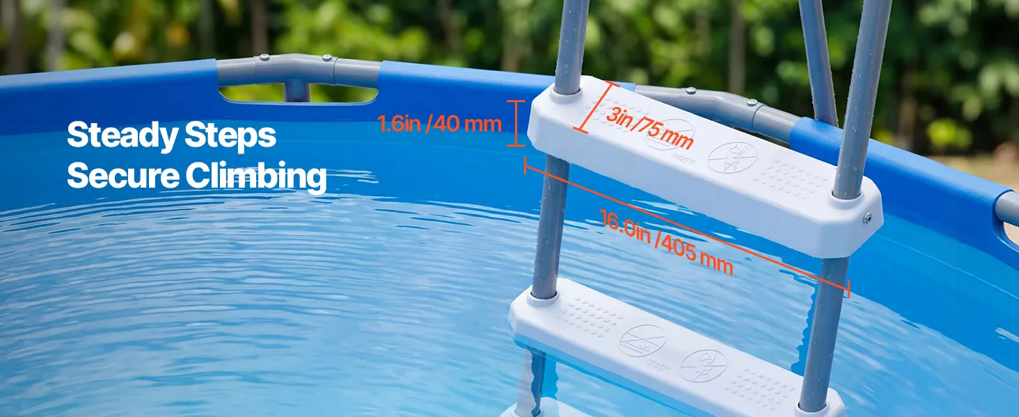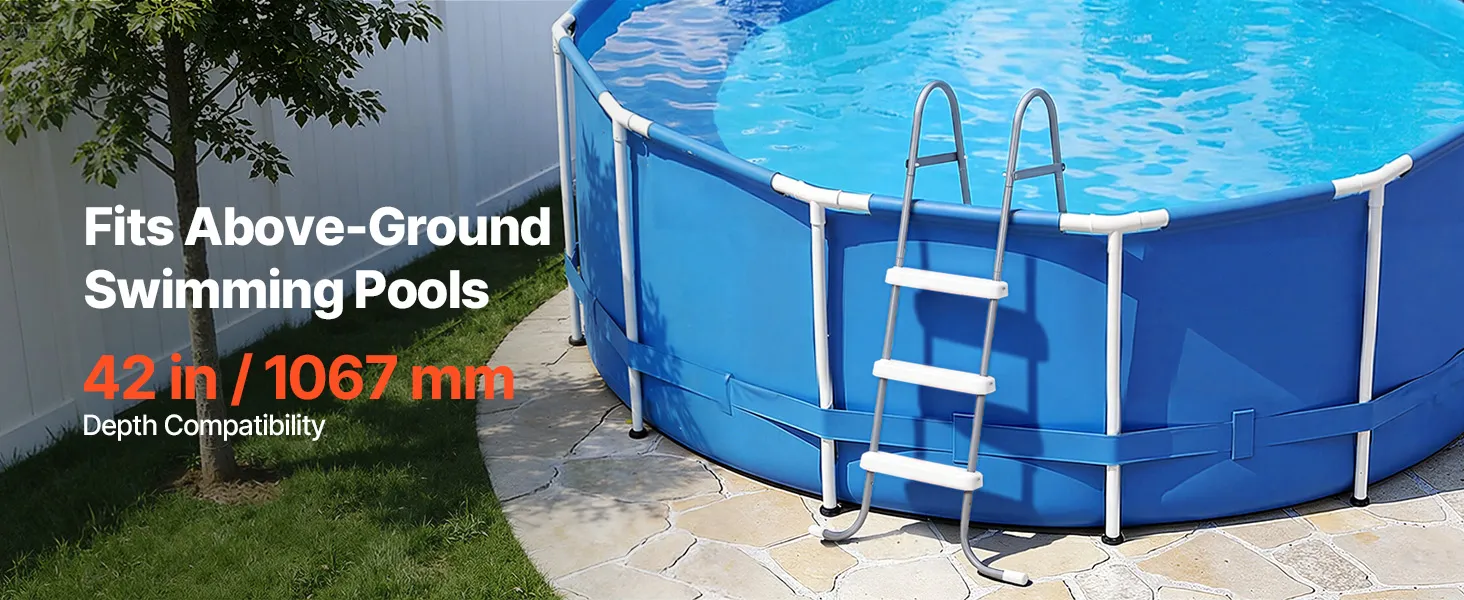 Fit Above-Ground Swimming Pools: This above ground pool ladder is compatible with 42 in above-ground swimming pools and performs better on flat, level surfaces for enhanced stability and secure everyday use