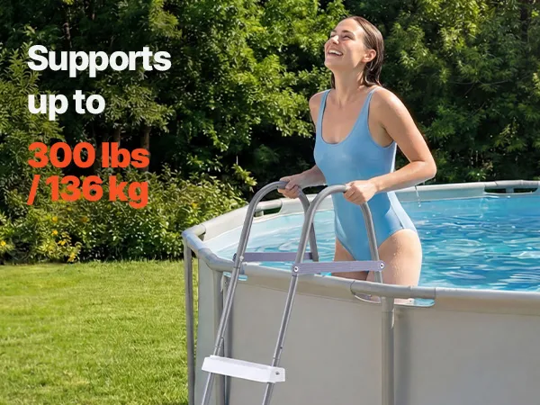 Secure and Stable: These above ground pool steps feature textured anti-slip treads, a reinforced crossbar, and rubber grip feet to keep every climb stable. Supports up to 300 lbs / 136 kg for confident use