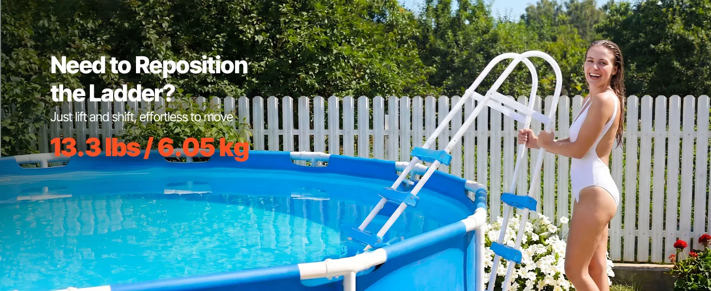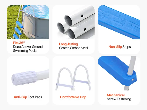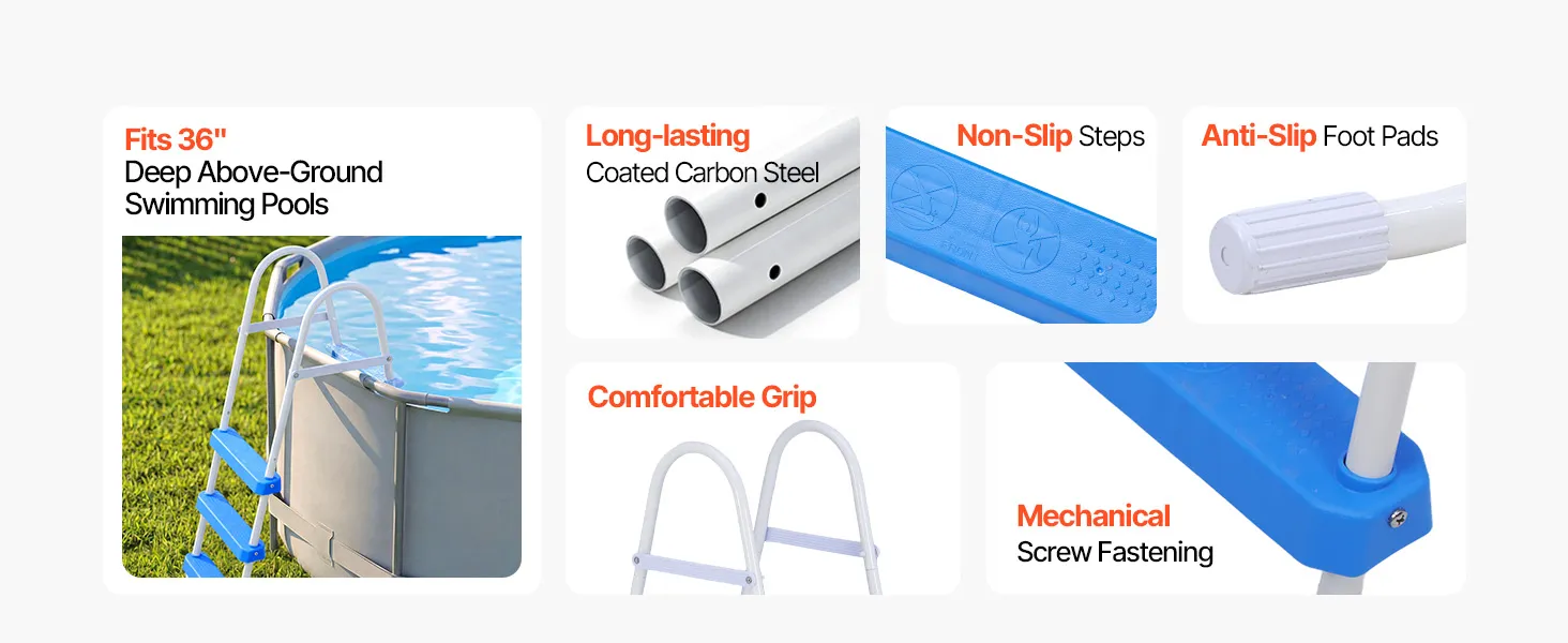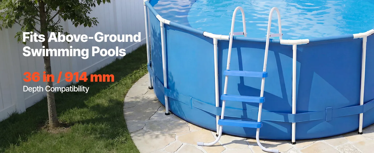 Fit Above-Ground Swimming Pools: This above ground pool ladder is compatible with 36 in above-ground swimming pools and performs better on flat, level surfaces for enhanced stability and secure everyday use