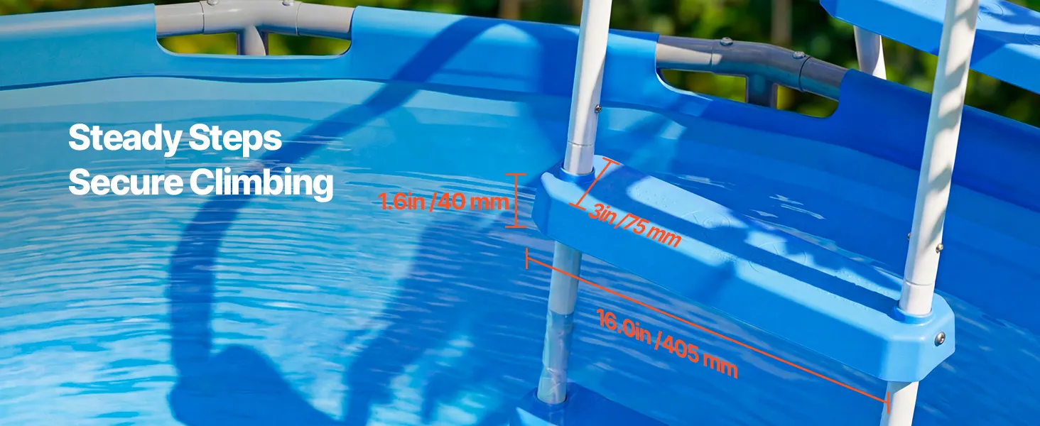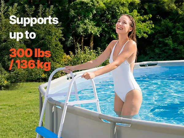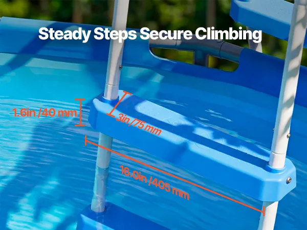 Secure and Stable: These above ground pool steps feature textured anti-slip treads, a reinforced crossbar, and rubber grip feet to keep every climb stable. Supports up to 300 lbs / 136 kg for confident use