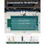 VEVOR pool safety cover on a patio with trees and text highlighting its dimensions.