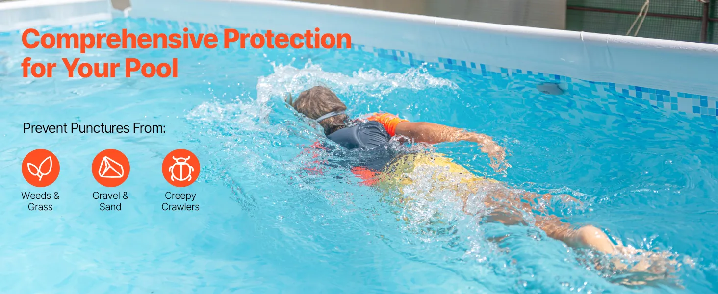 Our extra-thick pool liner pad provides superior protection against sharp objects, weeds, and water contamination. Designed for easy installation and maximum durability, it ensures a secure, clean, and comfortable swimming experience for you and your family, all summer long.