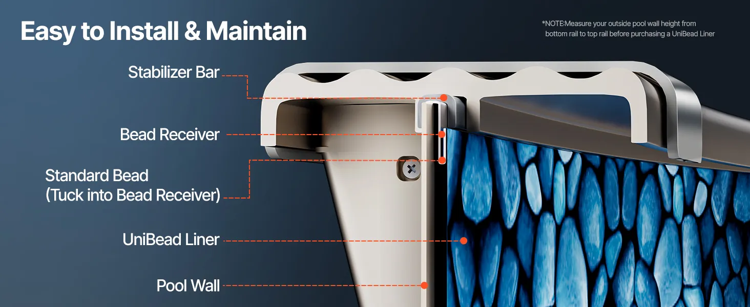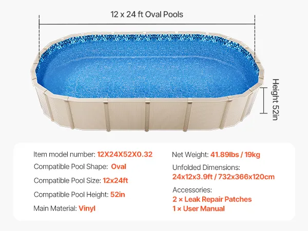 Fit for 12x24 ft Pools: Our pool liner is specially measured to fit 12x24 ft oval pools with a flat bottom and wall height of up to 52 inches, ensuring an exact and secure fit for your pool.