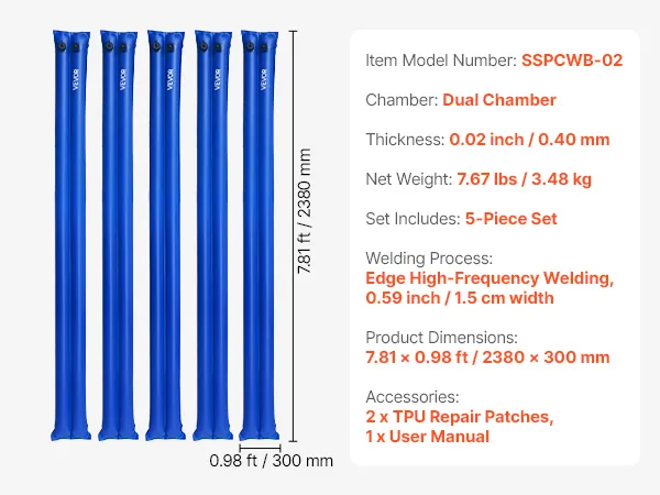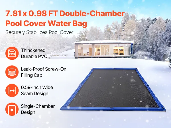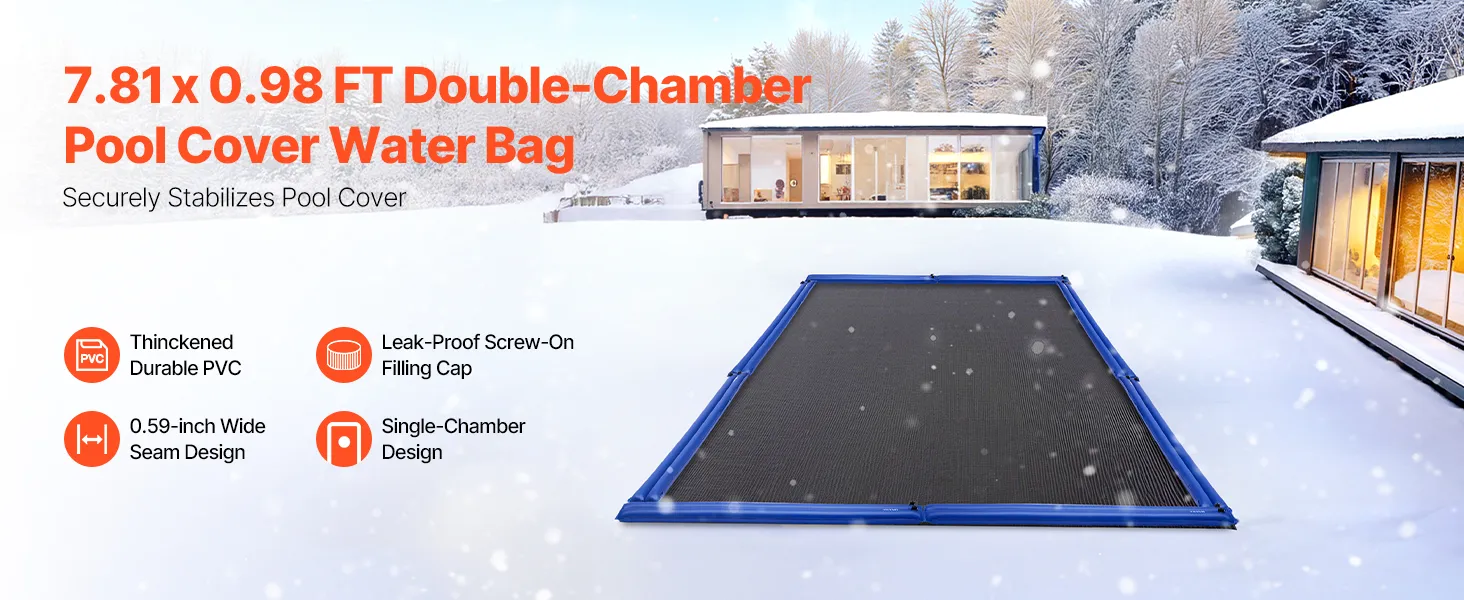 Enhance Winter Pool Security: This 5-pack of 8 x 0.94 FT double chamber pool cover water bags are designed to add reliable weight secure your pool cover during winter, preventing debris and wind entering. Ideal for in-ground pools, these pool cover water bags are easy to fill, drain, and store, saving you cleanup time in winter.