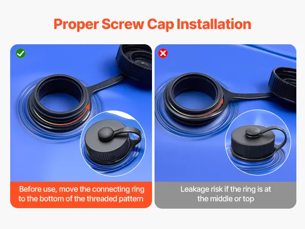 Leak-Proof Twist Cap: Each inground pool cover water bag features an easy-turn twist cap with a built-in rubber gasket for a tight seal. The anti-loss tether keeps the cap in place, while the upgraded design outperforms traditional snap caps in both convenience and sealing power. Tip: Before filling, slide the retaining ring to the bottom of the spiral pattern for a secure seal.