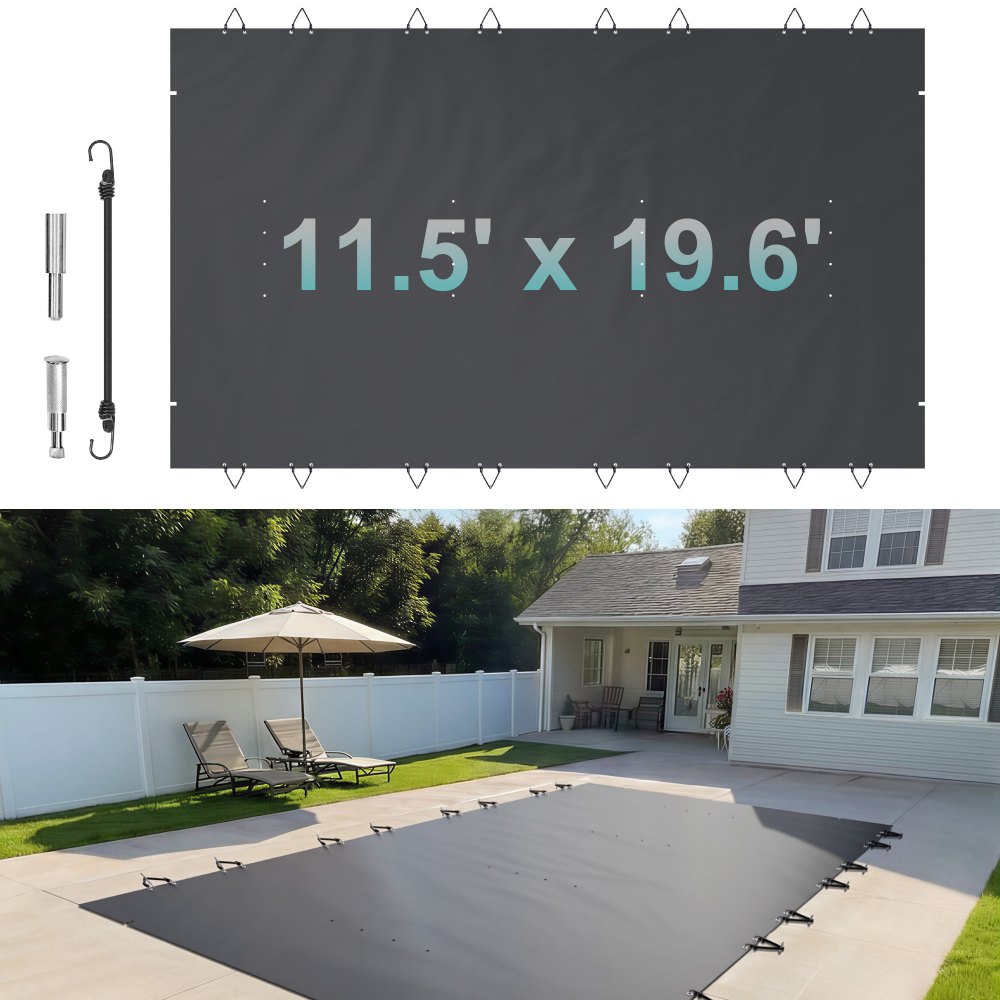 This 11.5 x 19.6 ft inground pool cover is designed to fit irregular-shaped pools. Please measure your pool carefully before purchasing.