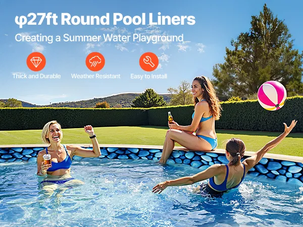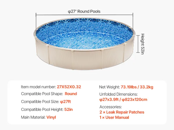 Fit for 27ft Pools: Our pool liner is specially measured to fit 27-ft round pools with a flat bottom and wall height of up to 52 inches, ensuring an exact and secure fit for your pool.