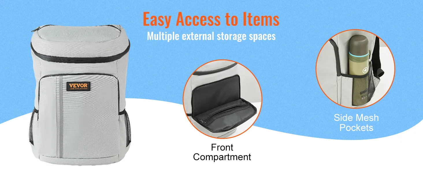Equipped with a heat-pressed waterproof lining and upgraded sealed zippers, the insulated backpack cooler ensures complete sealing. It can withstand sun, rain, and even melted ice without any leaks.