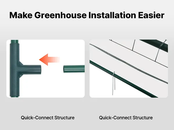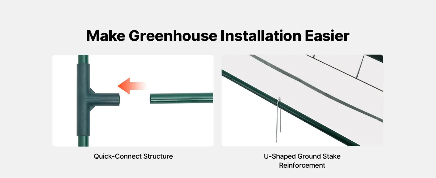 Easy Assembly: The walk in greenhouse includes clear instructions and a quick-connect frame for simple setup without complicated tools. U-shaped ground stakes help secure the base firmly. The extended bottom edge allows added weight for extra stability
