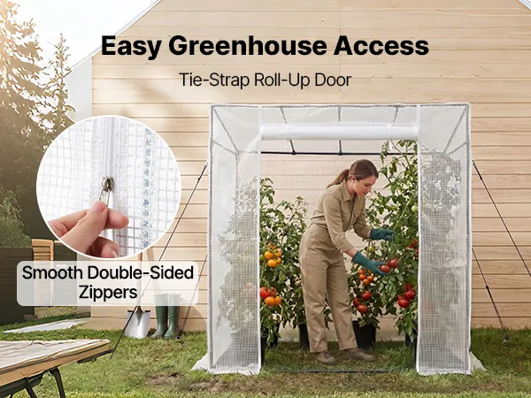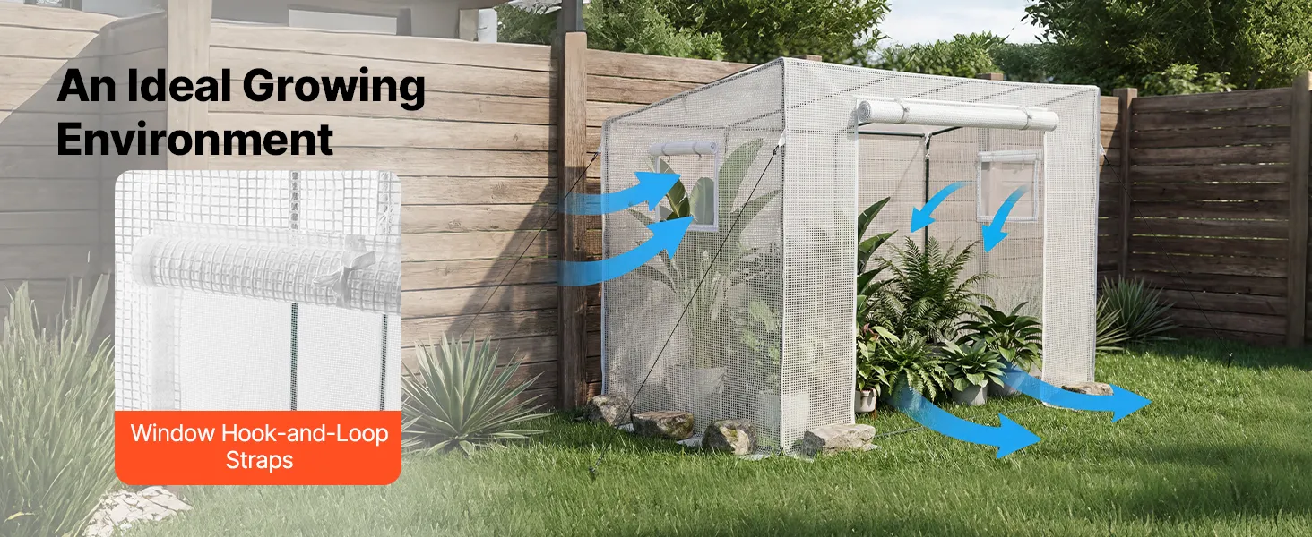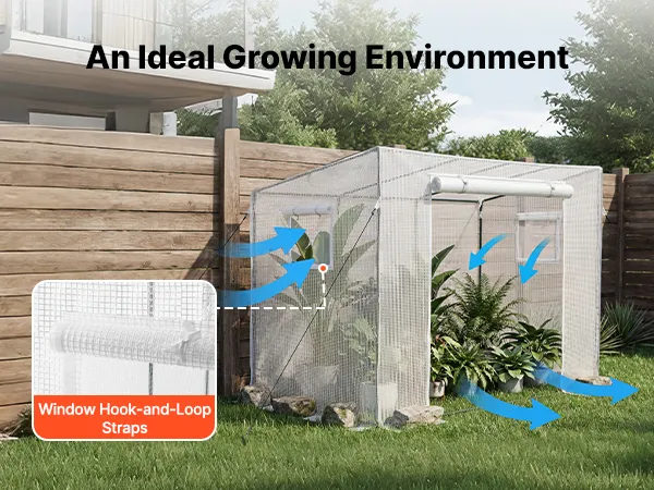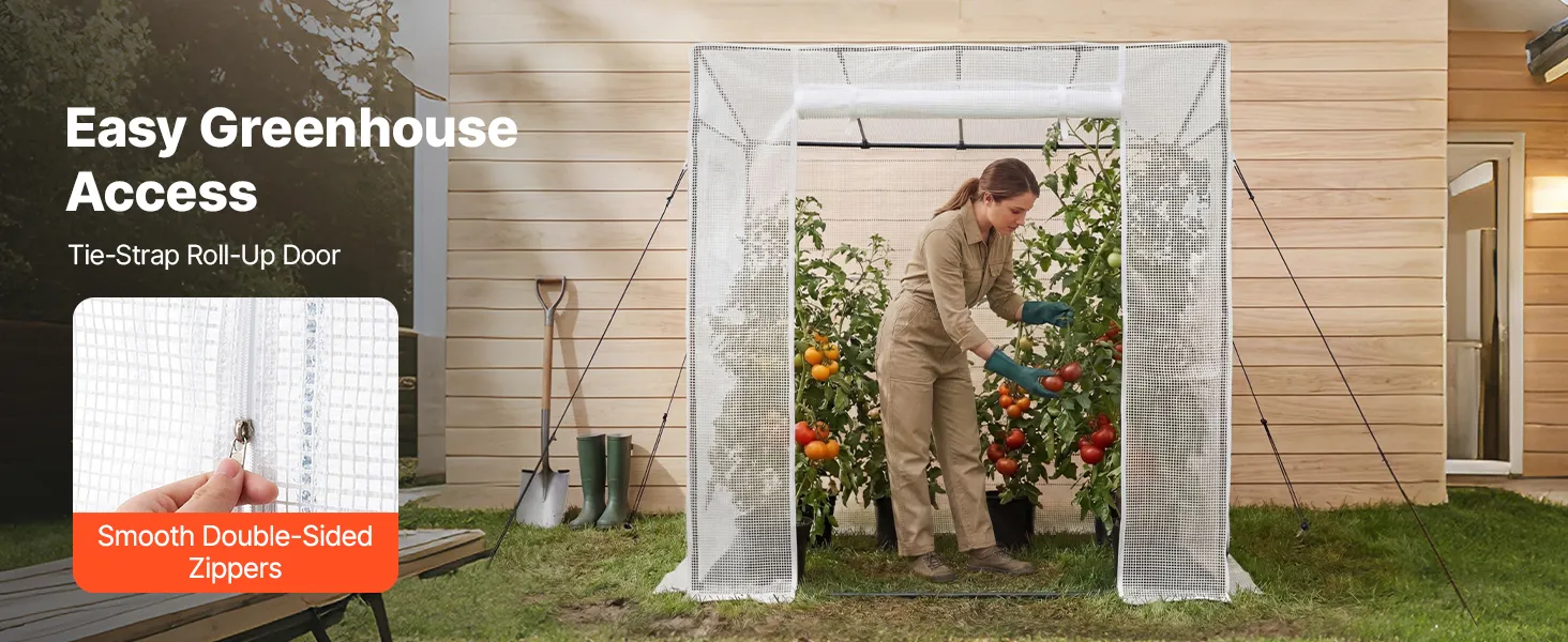 Easy Access & Ventilation: This walk in green house includes a zippered roll-up door and 2 windows with tie straps. They allow convenient roll-up access while promoting airflow and keeping animals out. It also extends the growing season for better results