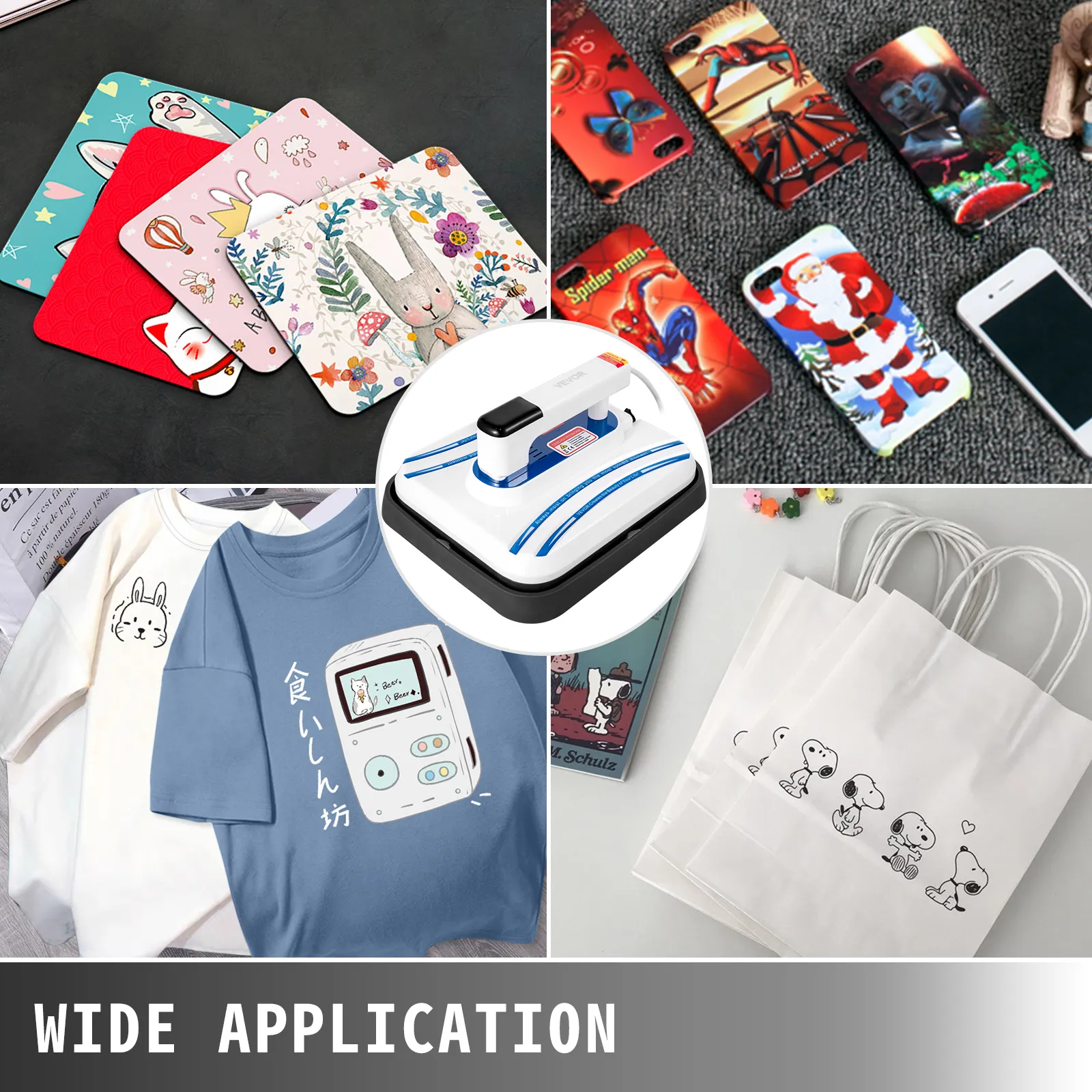 The tshirt printing machine is lightweight, portable, easy to store, and compatible with common heat-transfer materials. A portable shoulder bag will be provided, including 21 tools to help you create your masterpiece!