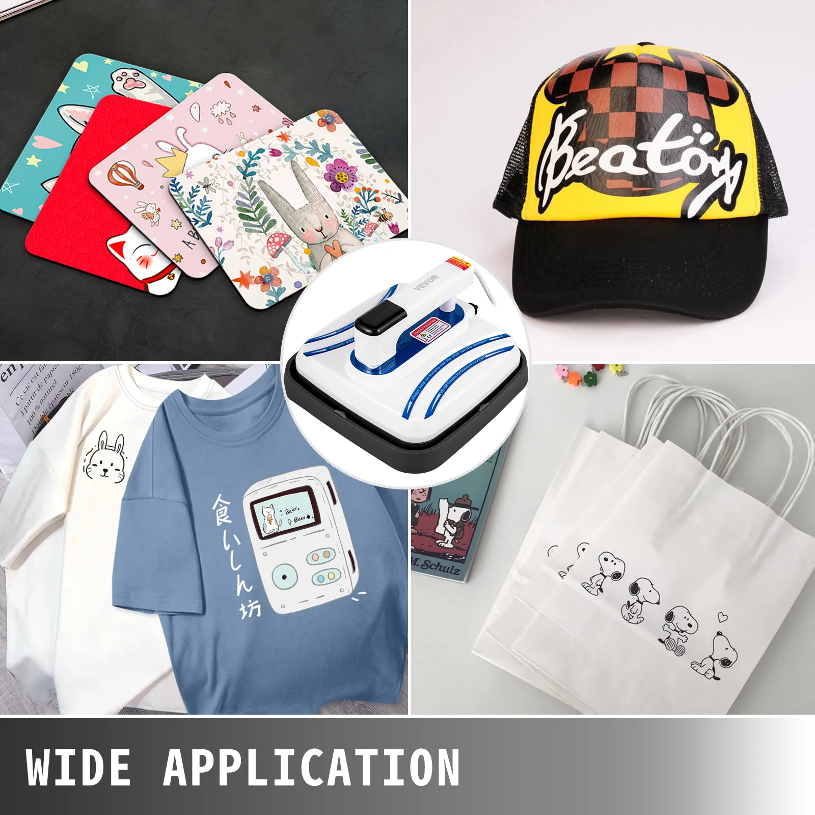 The tshirt printing machine is lightweight, portable, easy to store, and compatible with common heat-transfer materials. Match with the cap press, and it can realize a two-in-one function to create your personalized T-shirt and hat!
