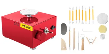 This small pottery wheel art set comes with a considerate 16pcs clay molding and carving tool kit, joined with a stepless variable speed knob, giving you more flexibility to help create your desirable works.