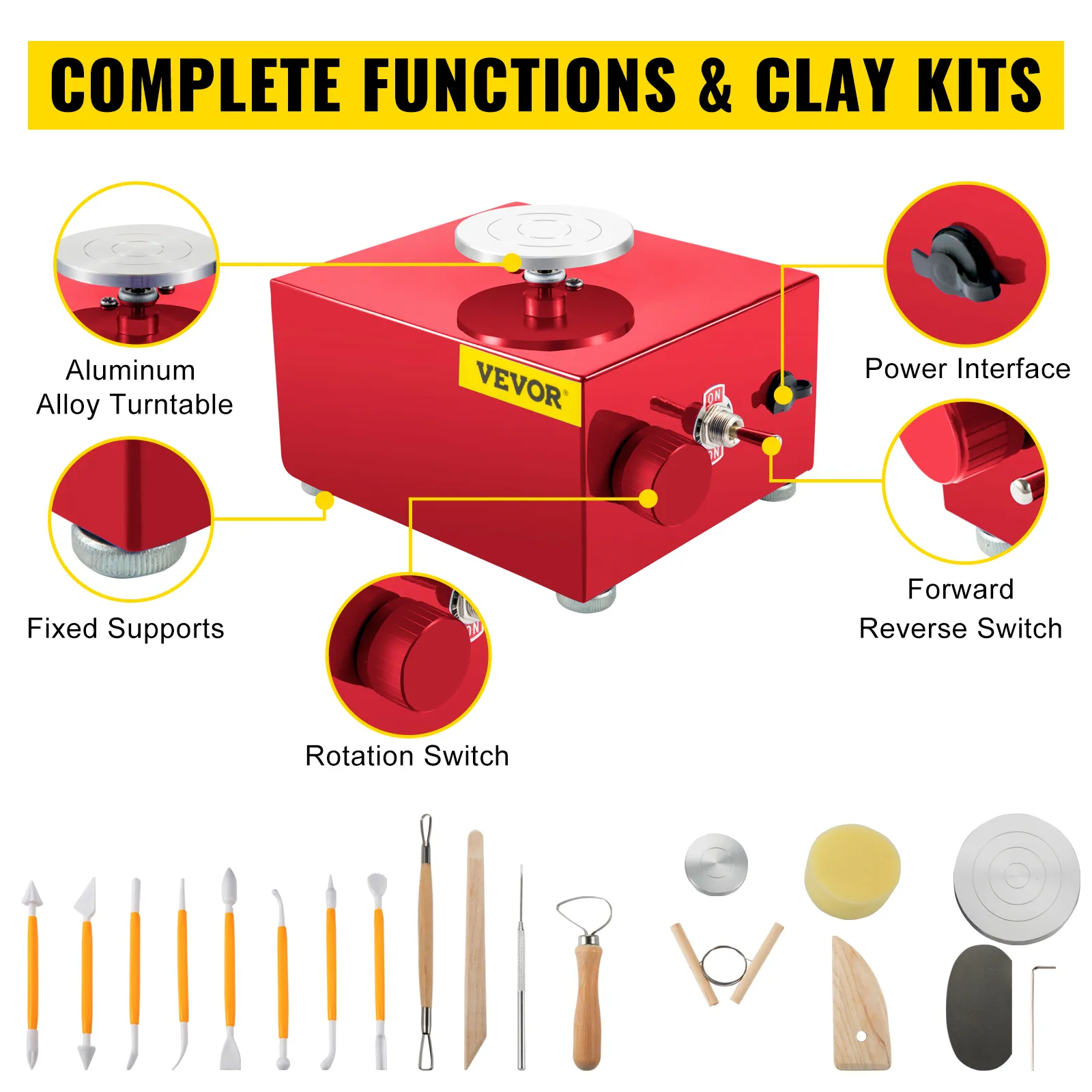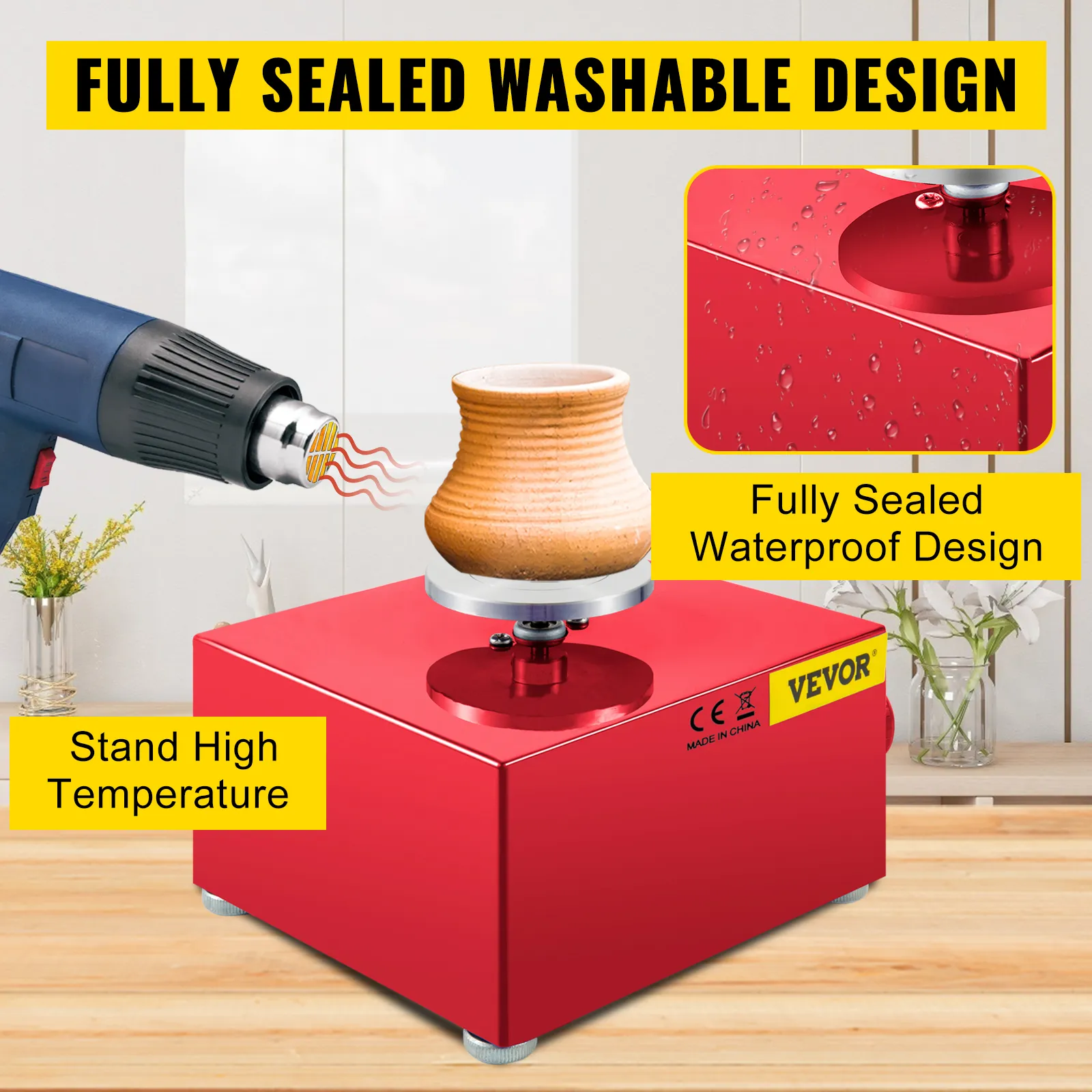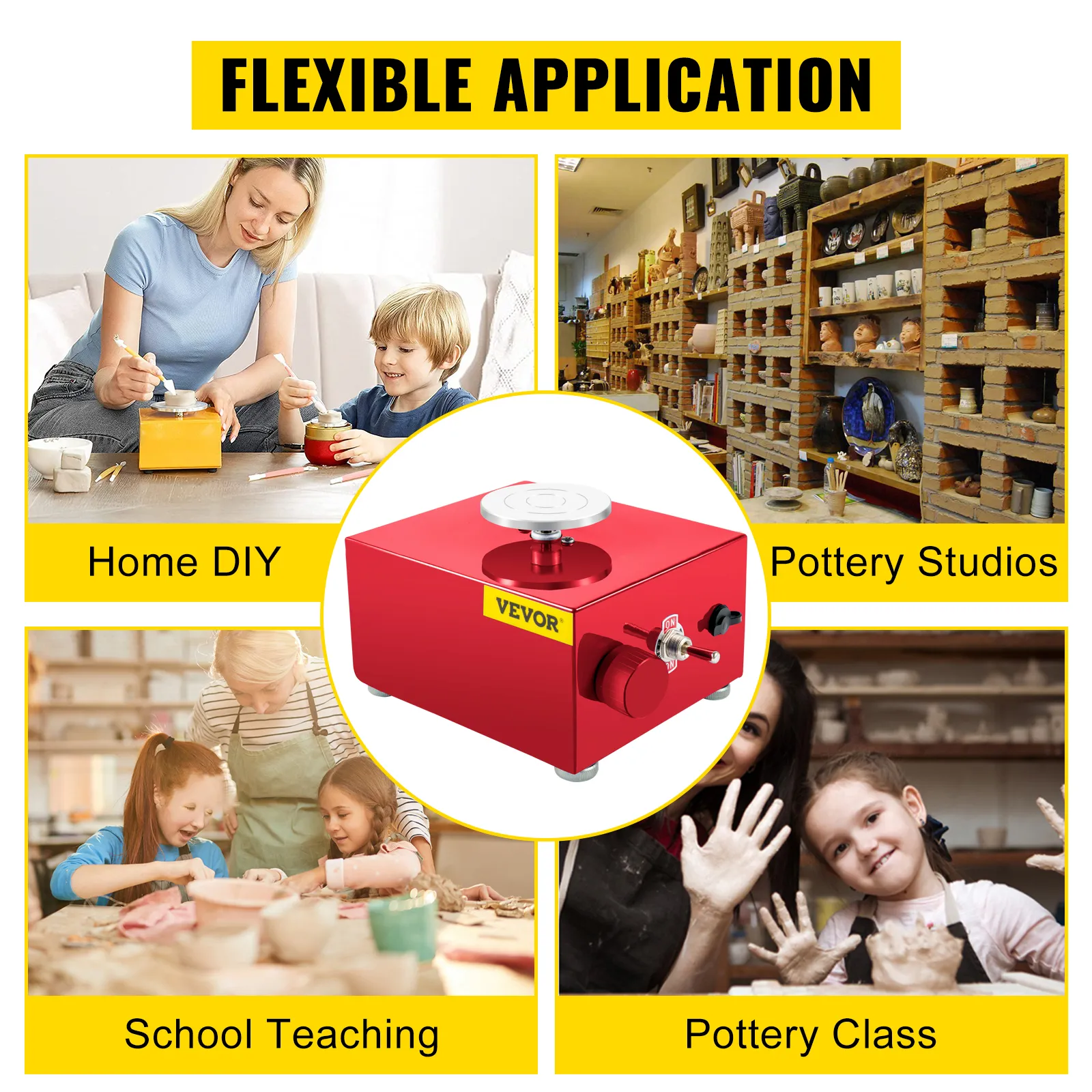 This mini pottery wheel machine owns a compact structure with a beautiful appearance, only covering a small area. It also provides high-quality aluminum alloy turntables and a powerful motor, allowing the ceramic wheel to operate steadily with low noise, especially for school teaching, pottery DIY shop, home DIY, etc.