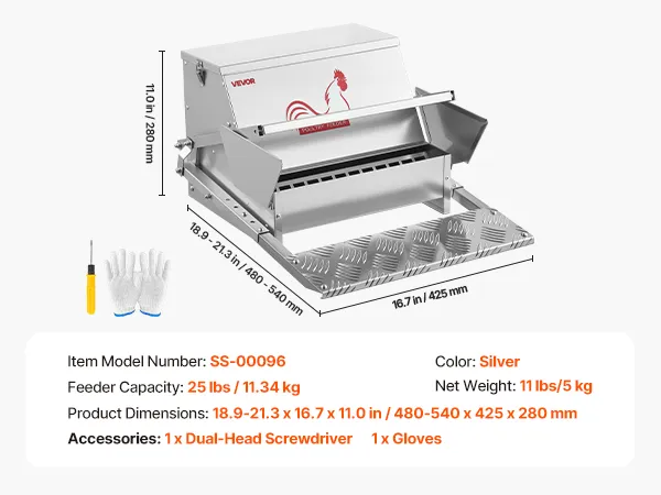 Durable & Built to Last: Crafted from galvanized steel, this automatic chicken feeder is corrosion-resistant, rust-proof, and easy to clean. Ideal for indoor or outdoor use in changing weather. Comes with a clear user manual and tools for easy assembly