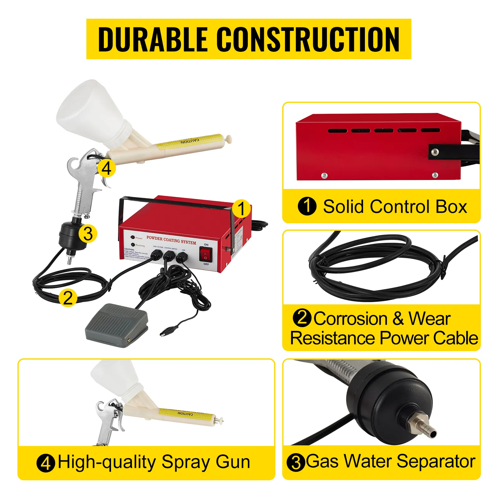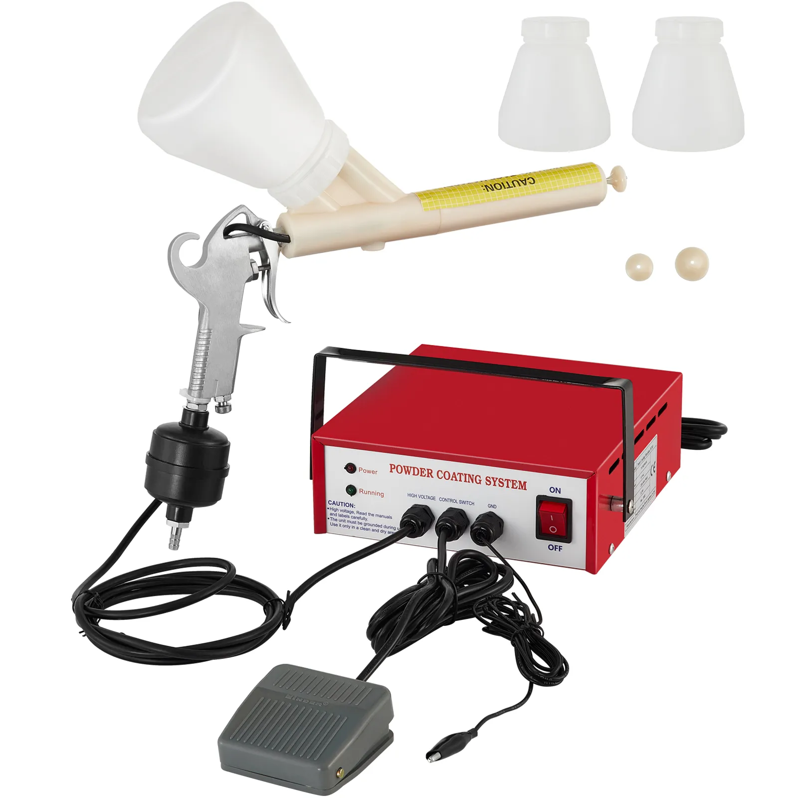 The powder coating system is made of premium material for long-term use. An air-pressure regulator on the handle controls the amount of air supply and boasts a good atomization effect.