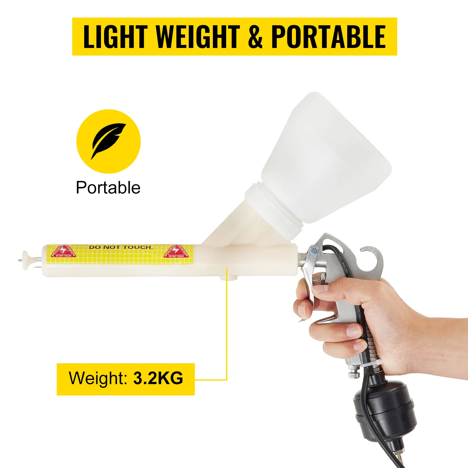 This professional paint sprayer provides a delicate, factory-like finish with adjustable electrostatic voltage. The 15-30KV voltage can guarantee extensive coverage and minimum overspray.