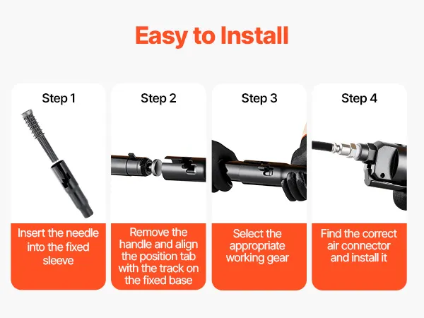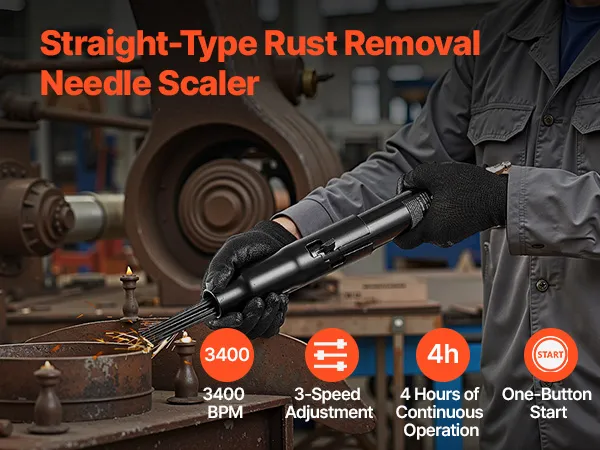 Easy to Use: Featuring a responsive trigger and one-button start function, this needle scaler air tool is simple to operate—no need to change triggers. Its straight-type design offers a comfortable, fatigue-free grip and easy access to tight spaces