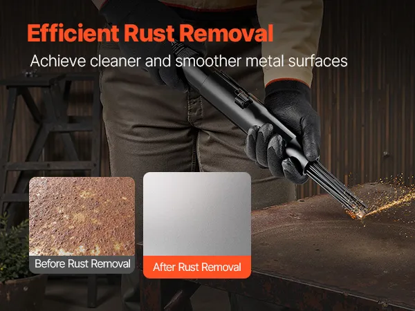 With high-frequency impacts and 19 hardened needles , this VEVOR air pneumatic needle scaler deeply cleans rust, oxide layers, and impurities from surfaces, leaving metal surfaces clean and smooth.