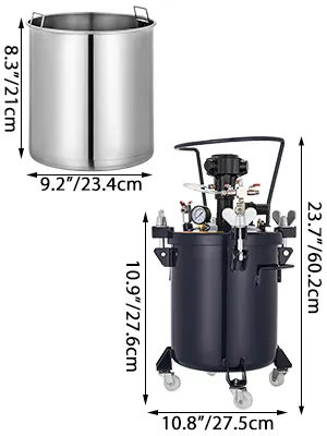 2.5-gallon pressure pot features an isolation net to isolate impurities; the stirring blade can stir the paint to avoid uneven coating precipitation.