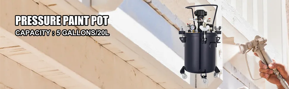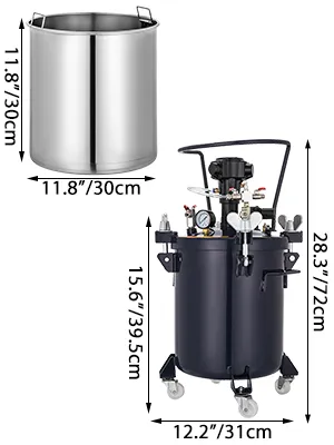 5-gallon pressure pot features an isolation net to isolate impurities; the stirring blade can stir the paint to avoid uneven coating precipitation.
