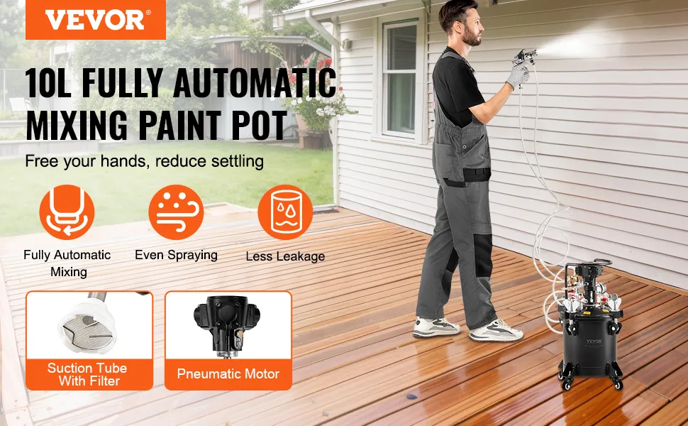 The large-capacity automatic stirring paint pressure pot is ideal for both home and industrial painting projects. It allows you to cover large areas in a single go, reducing the need for frequent paint refills.
