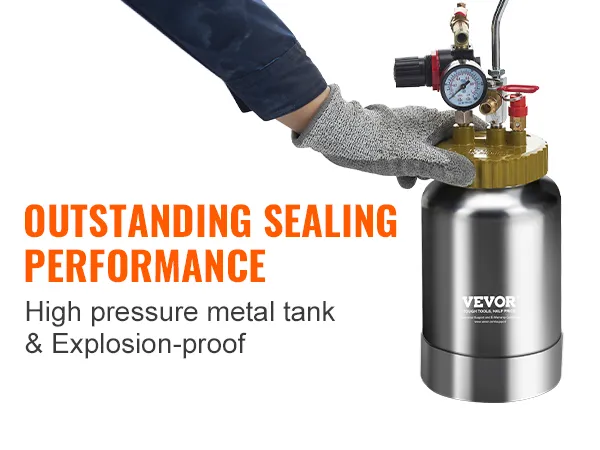 Upgraded Sealing: The high paint pressure pot has been upgraded with high-quality, pressure-resistant metal material and a rubber sealing ring at the bucket mouth. It has four lid sealing clamps that securely close and are equipped with anti-rust and anti-leakage thread sealant. It has undergone a water tightness test before leaving the factory, ensuring no gas leakage issues.