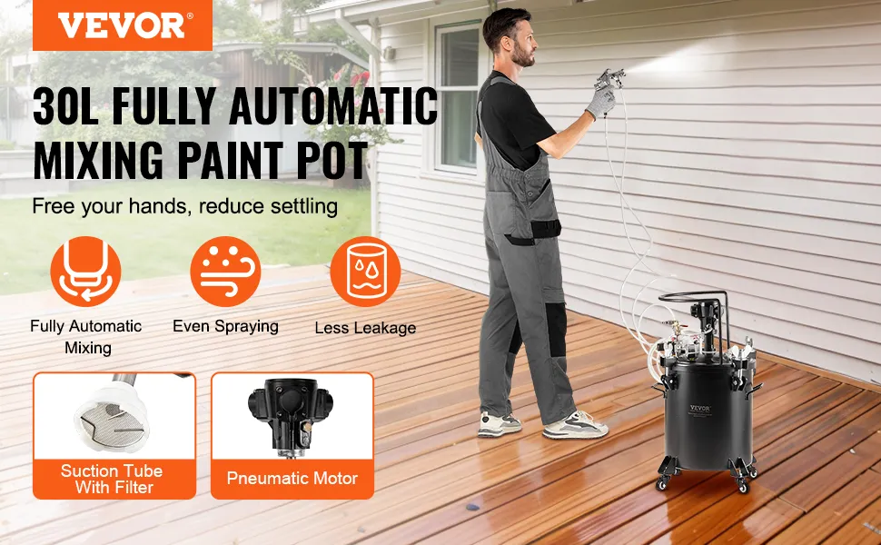 The large-capacity automatic stirring paint pressure pot is ideal for both home and industrial painting projects. It allows you to cover large areas in a single go, reducing the need for frequent paint refills.