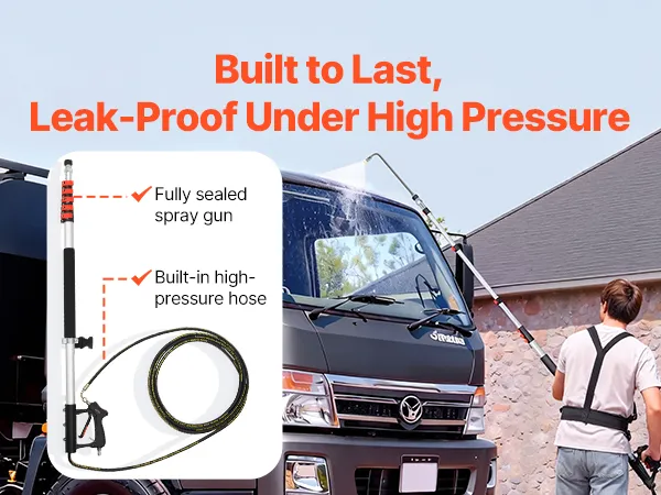 This power wash extension wand features a fully sealed spray gun and a built-in high-pressure hose, helping maintain stable operation and minimize leakage under high working pressure.