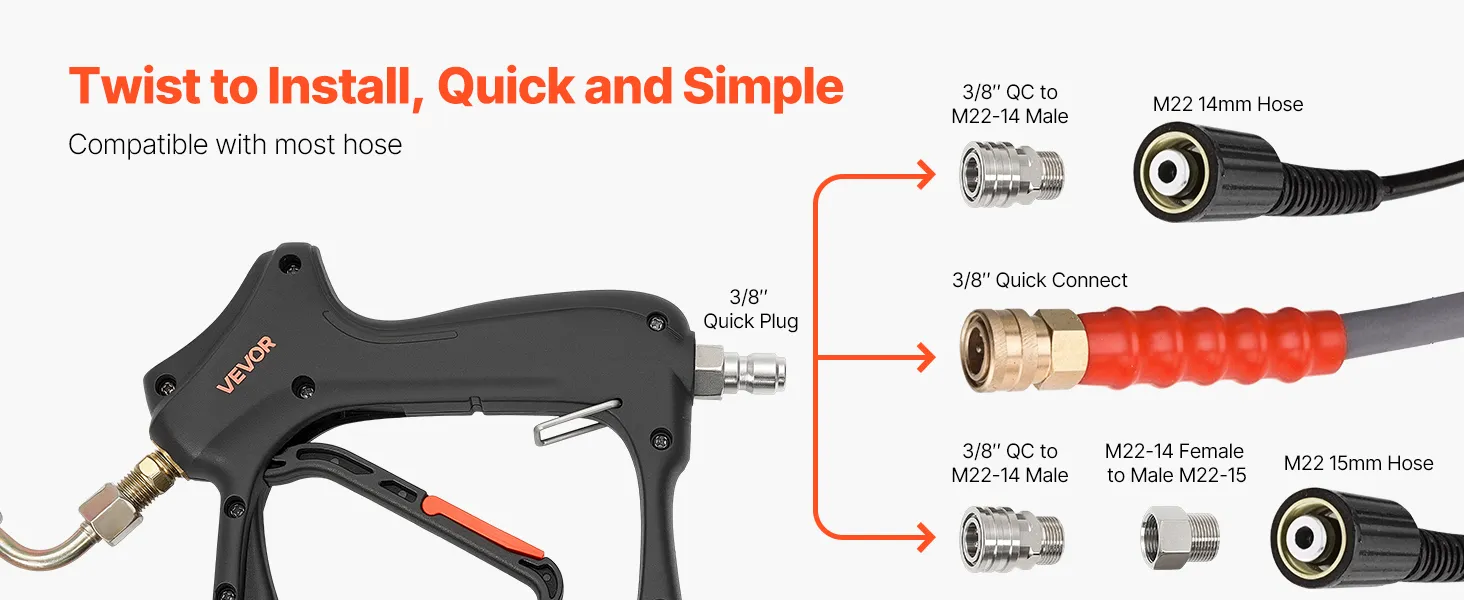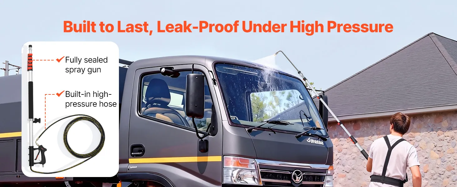 Wide Compatibility, Leak-Free: Designed as a reliable pressure washer extension wand, it is compatible with most pressure washers and handles up to 4000 PSI. A fully sealed spray gun and built-in high-pressure hose help ensure stable operation