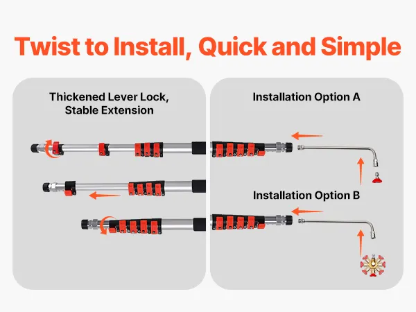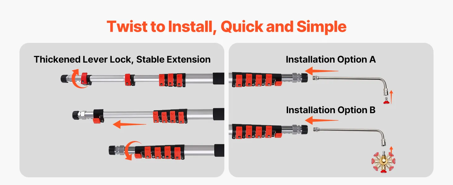 Designed as a telescoping pressure washer wand, it features a reinforced lever lock for smooth length adjustment and stable extension. You can also choose whether to install the rotating coupler based on your cleaning needs.