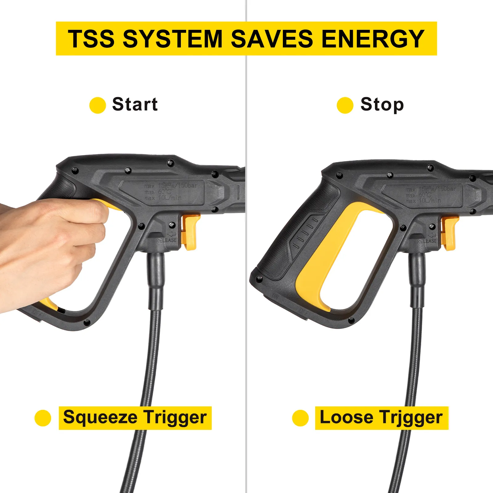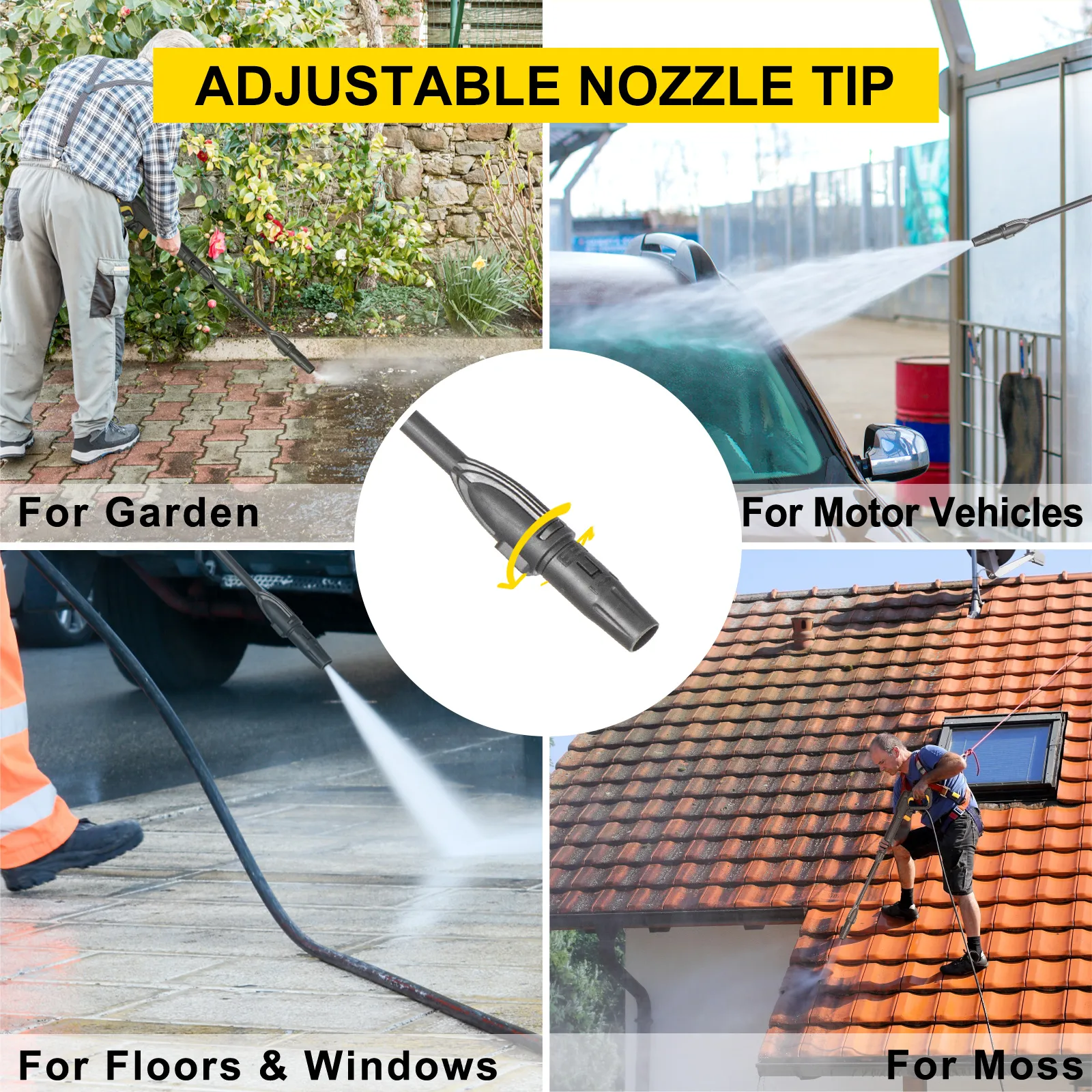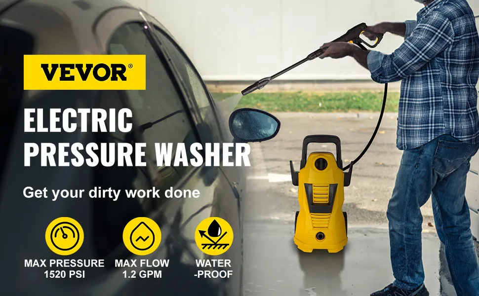 The powerful electric pressure washer can adjust the water flow and the pressure(1015PSI to 1520 PSI) by rotating the nozzle tip. Your cleaning jobs become easier with the help of our washer.