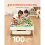 VEVOR Train Table, 100 Multicolor Pieces Wooden Kids Activity Table with Rolling Storage Drawer, 3-in-1 Wooden Train Set for Gaming, Drawing, Reading, Eating, Creative Toy Set for Kids Ages 3+
