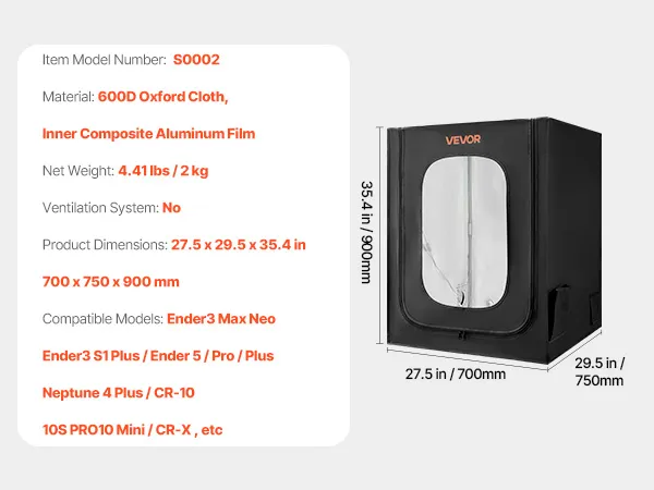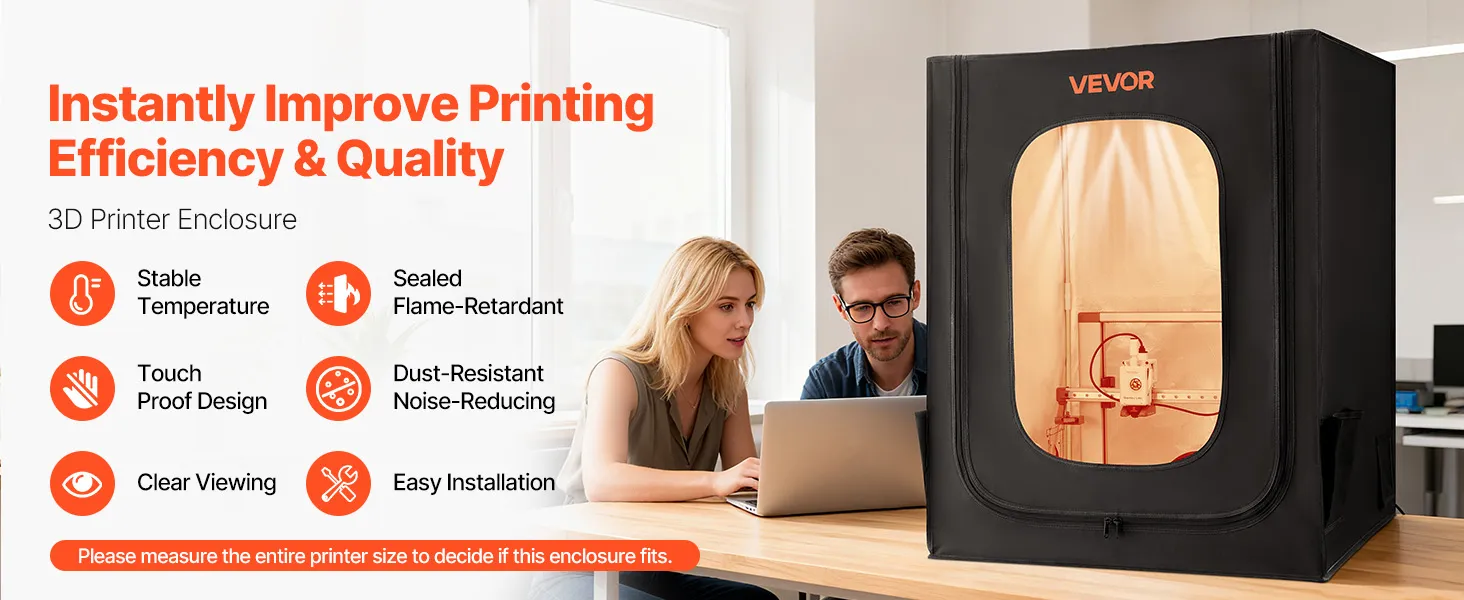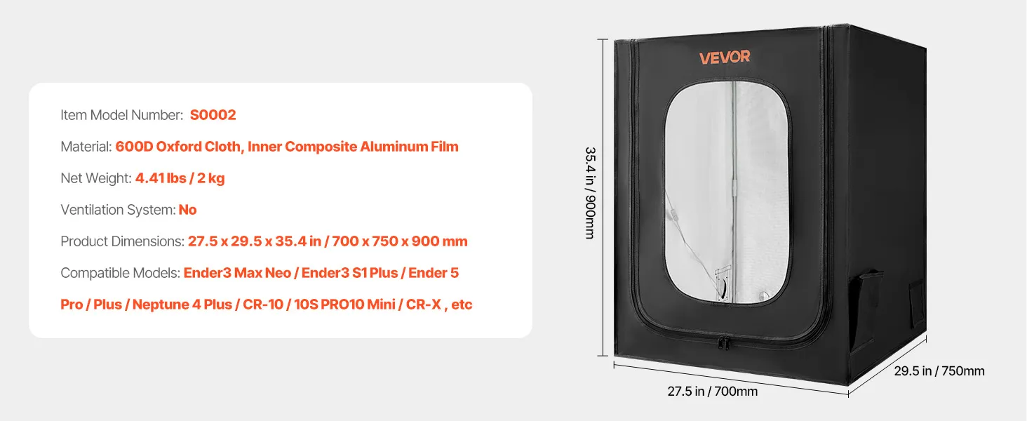 Wide Compatibility: Measuring 27.5 x 29.5 x 35.4 in, our 3D printer tent easily accommodates Ender3 Max Neo/Ender3 S1 Plus/Ender 5/ Pro/Plus/Neptune 4 Plus/CR-10/10S PRO10 Mini/CR-X, etc. Please measure your printer before ordering to ensure compatibility
