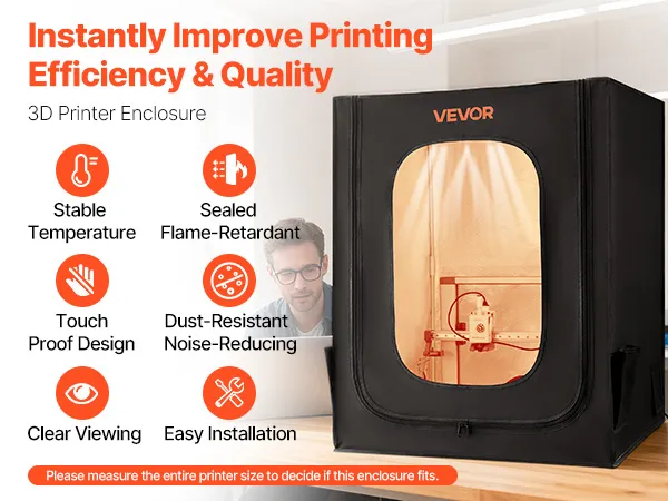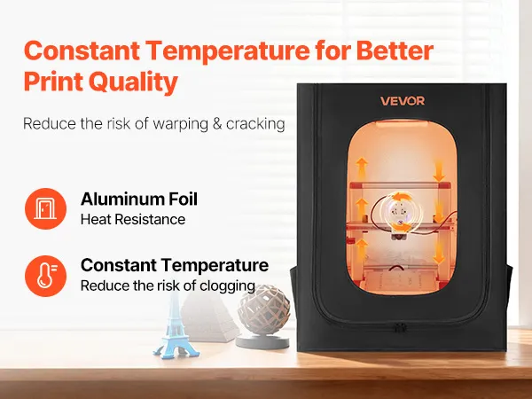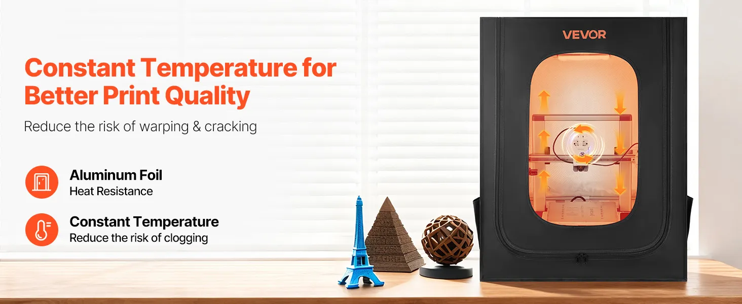 Constant Temperature: Maintaining a stable temperature, this 3D printer enclosure improves the consumables adhesion, reduces warping and clogging. It can lower the risk of clogging and jamming ensuring premium prints and less material waste