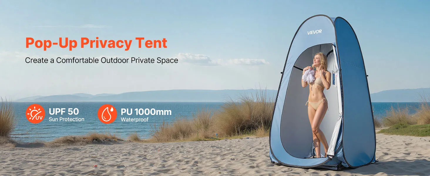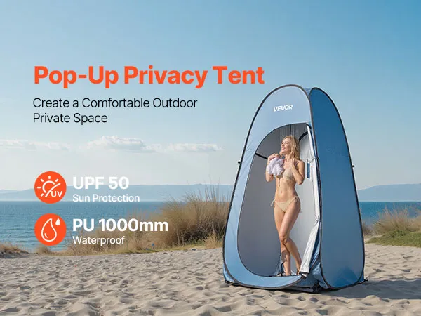 Our pop-up shower tent is made with UPF 50 sun protection and PU2000 mm water-resistant fabric to block sun and rain at the beach or campsite, keeping the interior dry and comfortable.