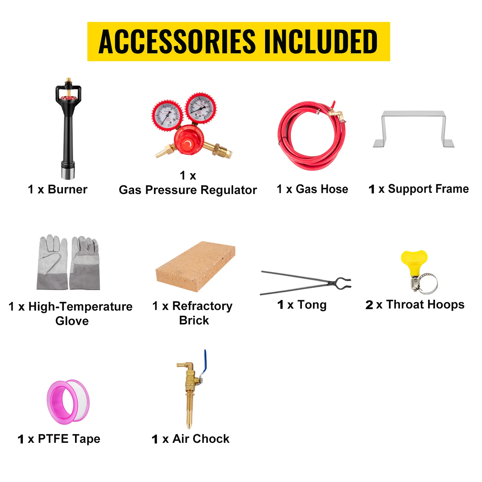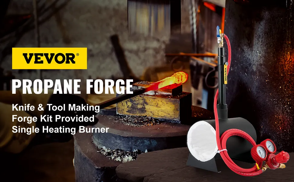 Blacksmithing Forge Kit: We provide a complete kit of forging accessories to fit our propane forge, including a pair of high-temperature gloves, a tong, a gas hose, a gas pressure regulator, a refractory brick, a support frame, a burner, 2 throat hoops, 1 PTFE tape, and an air chock. You can create your blacksmithing works at will.