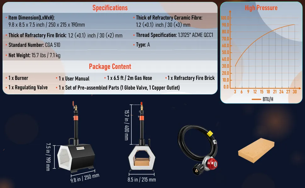 A forge burner with a beautiful orange color gives a more attractive outlook. With a better air inlet, this gas forge has more oxygen to enhance its burning capabilities. The superior structure provides a better effect and durability. It also is safe to use the product for a long time.