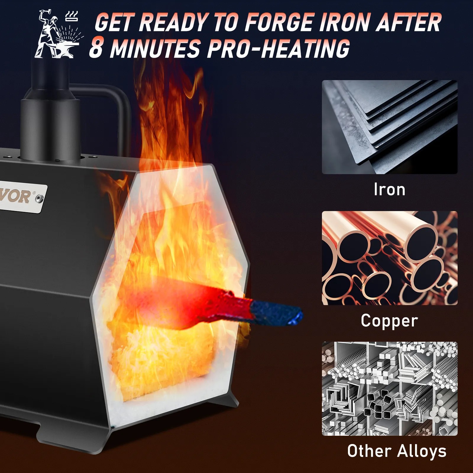 The VEVOR propane forge portable is made with high-quality materials. It's made of a cold-rolled plate and 45# steel for the burner. This construction ensures durability and long-lasting performance. Our forge is designed to withstand high temperatures and frequent use. Good-quality materials make it a dependable tool for any blacksmithing project. Integrated construction without welds enhances its durability. It is a strong and reliable tool suitable for both beginners and experts. Yes, this powerful build makes it an excellent addition to any workshop.